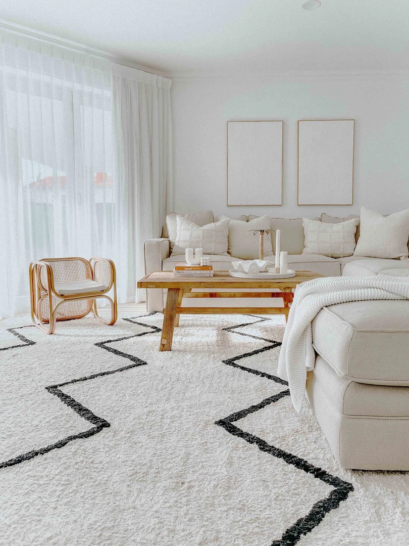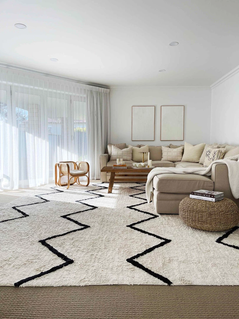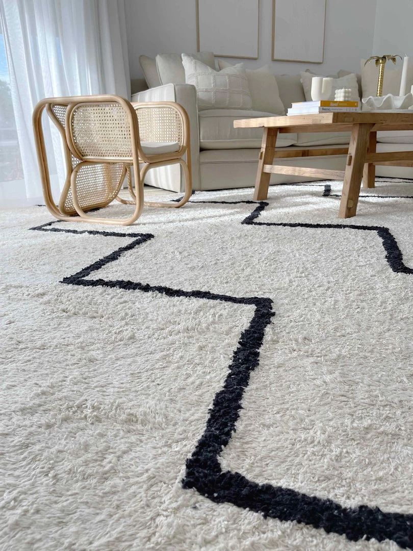 Set against a gorgeous natural cream base, Hayley features a zig zag pattern in a contrasting black and a soft pile of durable fibres. A timeless addition to a modern, classic, bohemian or vintage space.