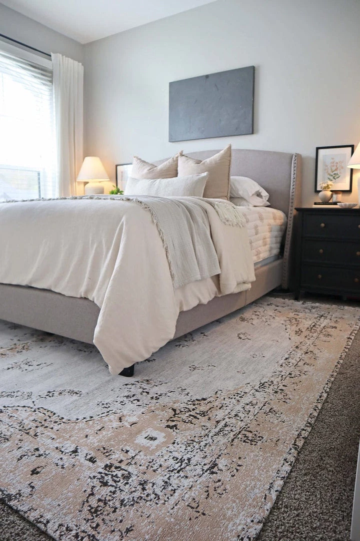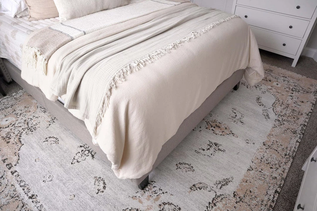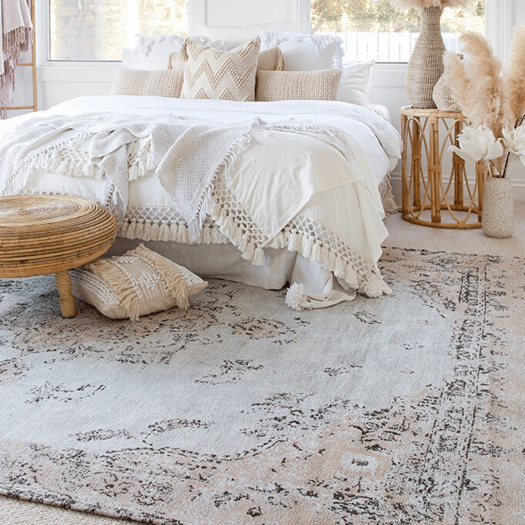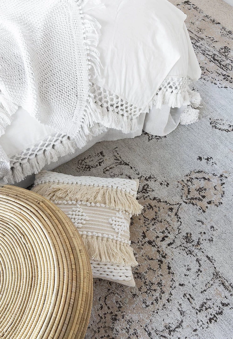 Woven using the intricate jacquard technique, Helena is lovingly made in India from silky cotton chenille/polyester blend fibres that are an absolute dream underfoot and give the rug a subtle vintage effect as it picks up light from different angles.
