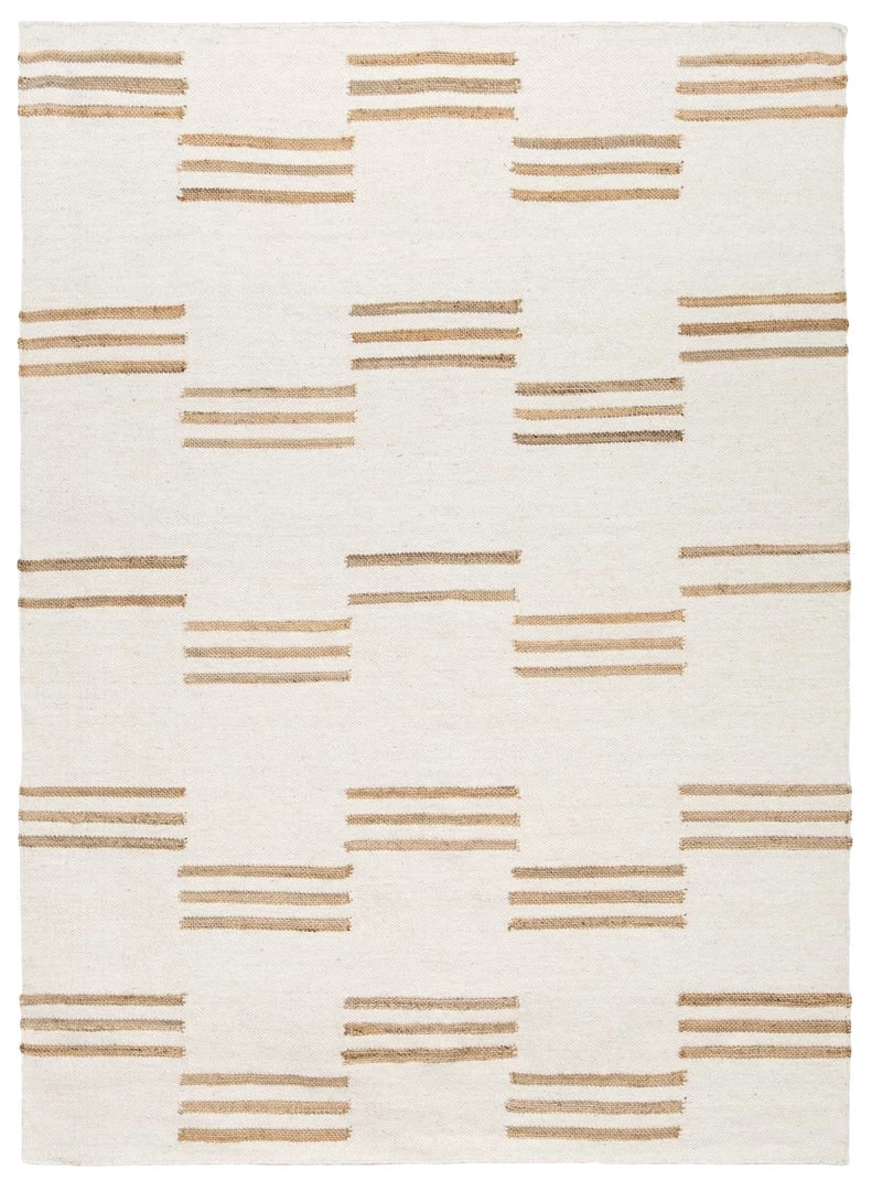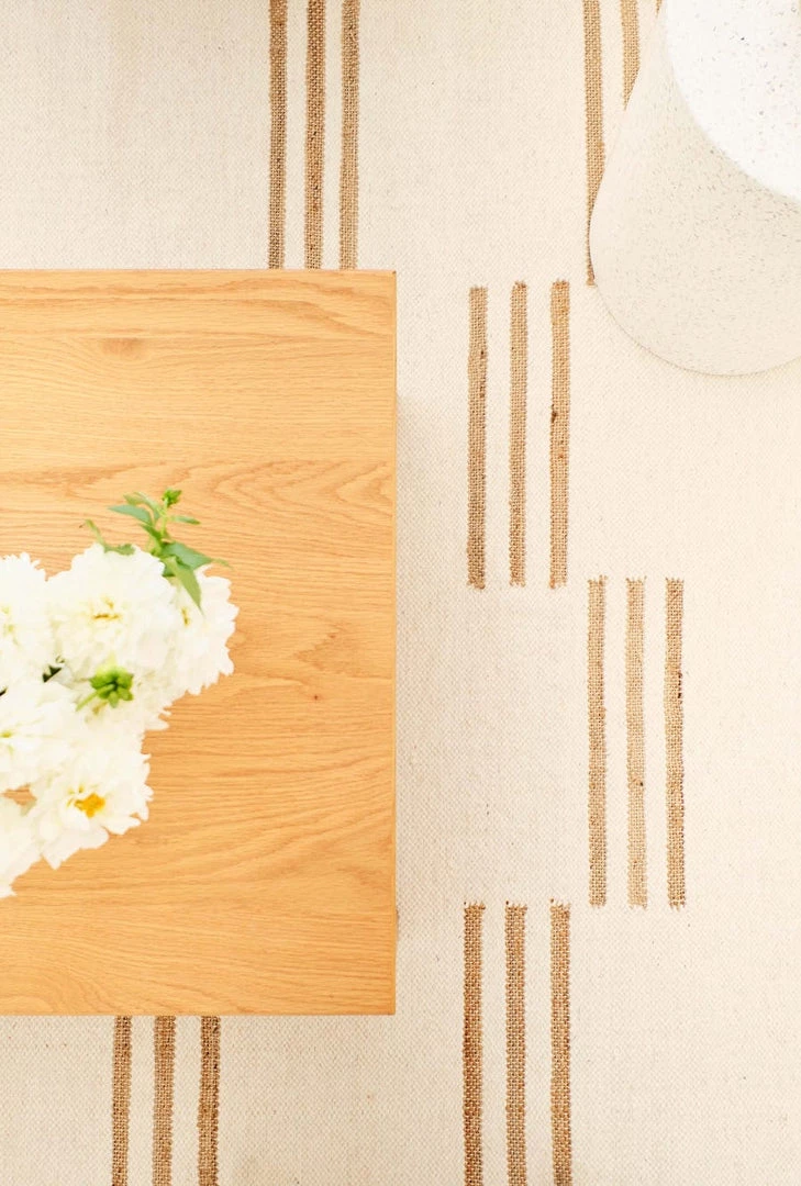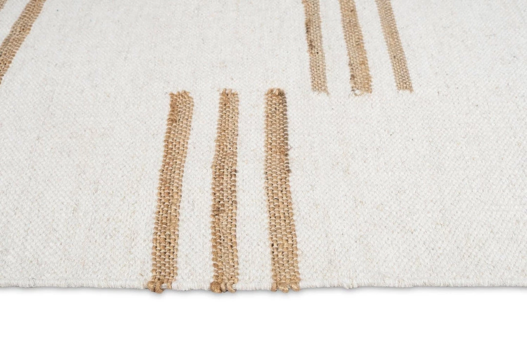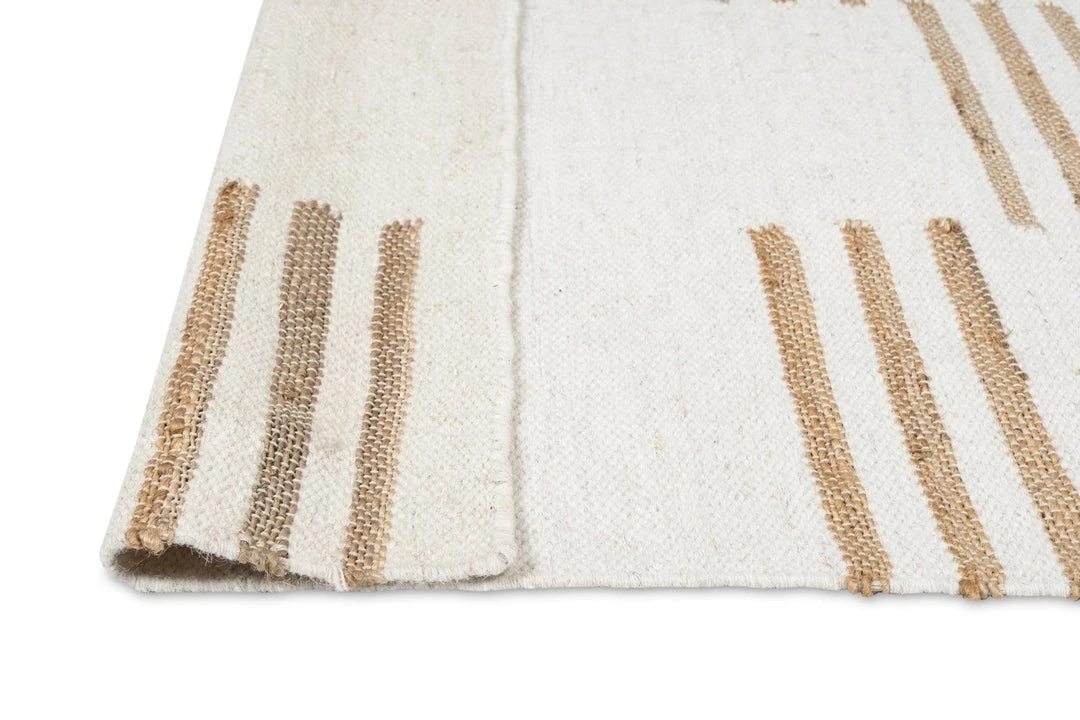 Hendrix is a natural toned beauty, an undyed blended fibre rug flatwoven by hand with a minimal striped pattern in warm jute.