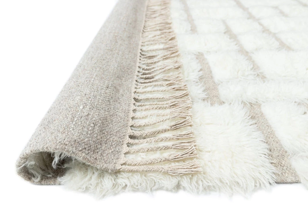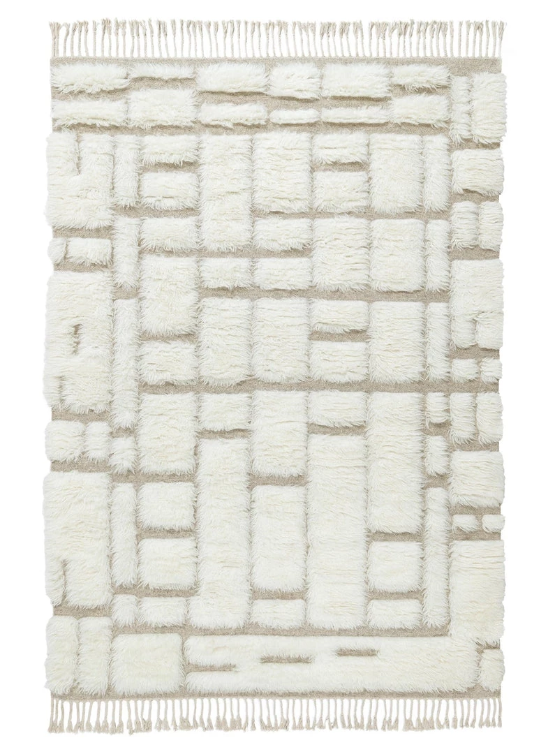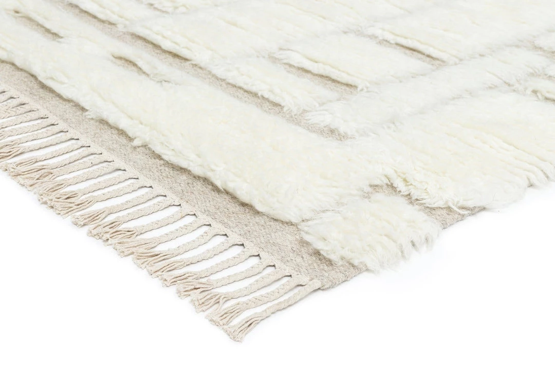 Ivry is a stunning tufted natural ivory wool rug with a textured geometric line pattern.