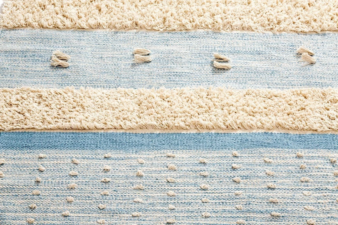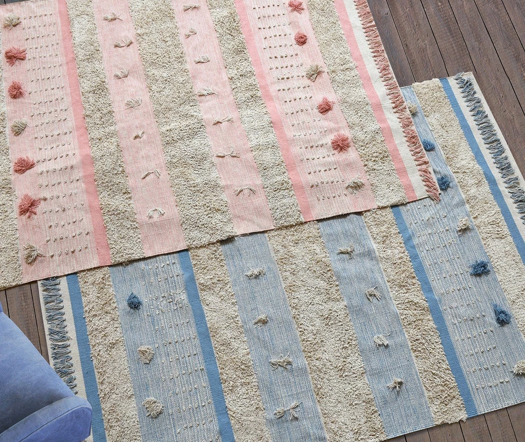 Part of the exclusive Miss Amara Wonderland Collection, Jazmin is a gorgeous flatweave rug in a darling blue and ivory colour combination. With whimsical tassel fringing, pom-pom detailing and gorgeous baby blue colourway, Jazmin is a perfect addition to the kid’s rooms or anywhere in your home where you want to add a pop of playful design.