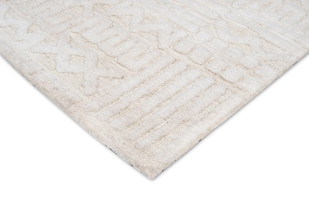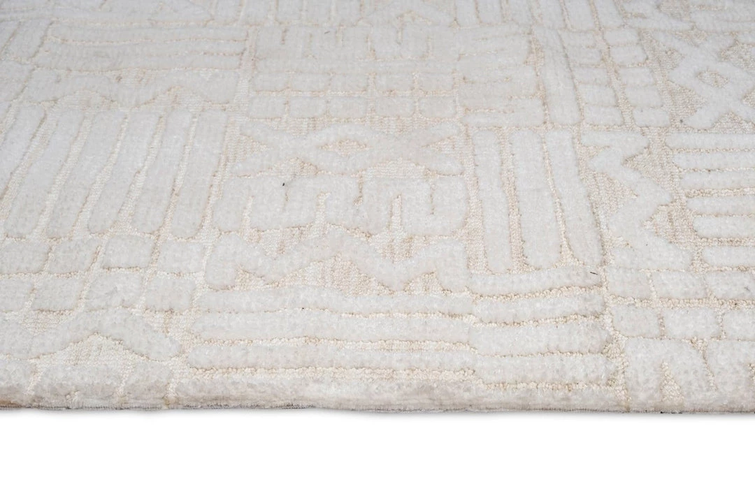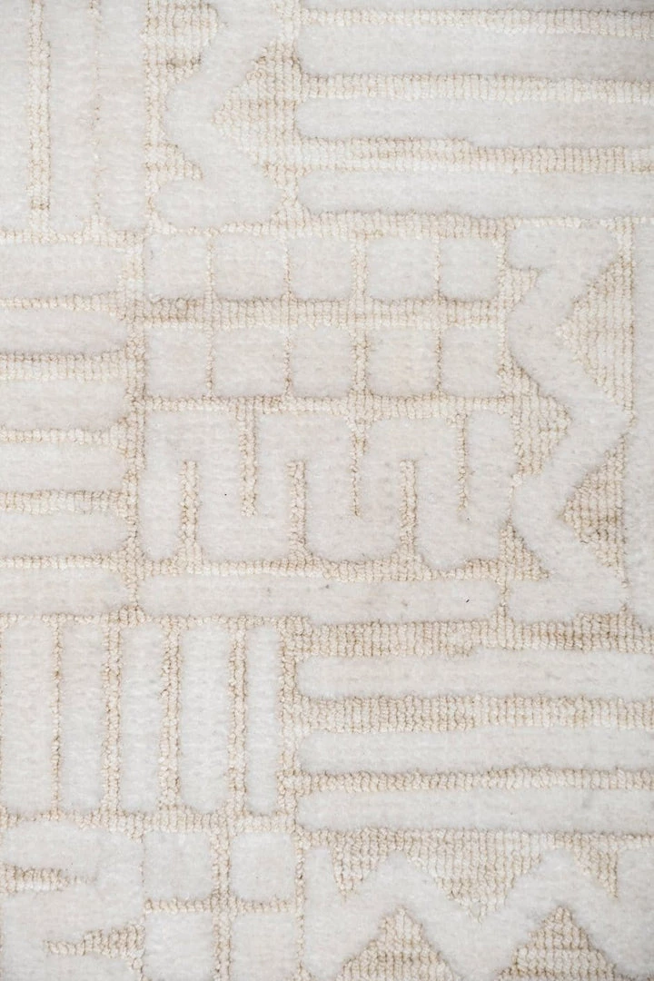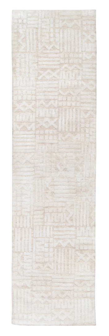 Kalinda is a stunning transitional warm beige and ivory rug crafted with a unique textured high-low tribal print.