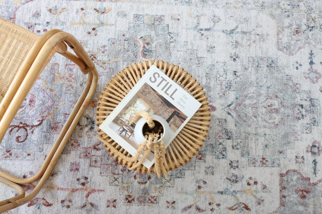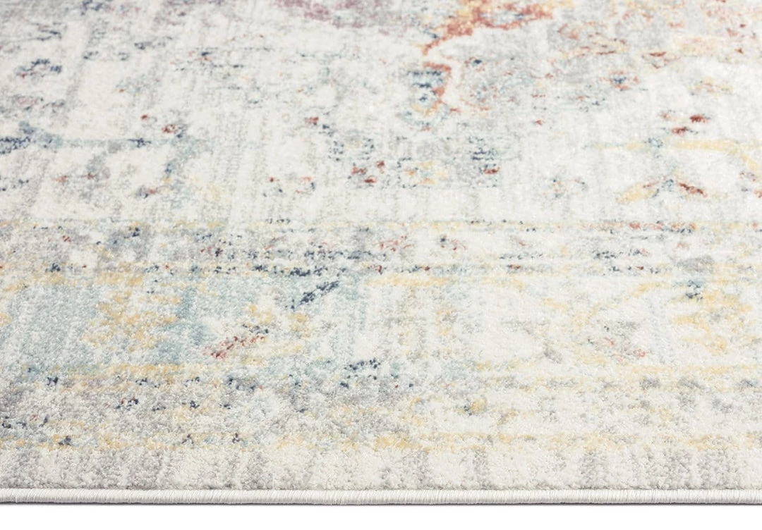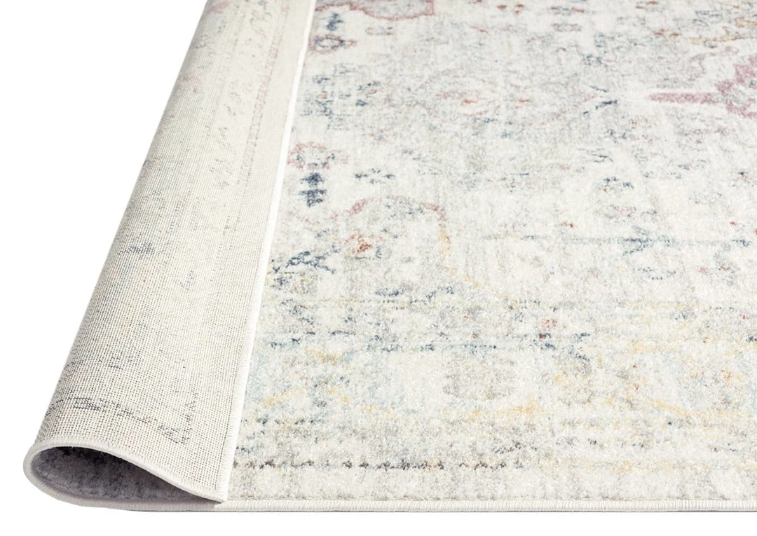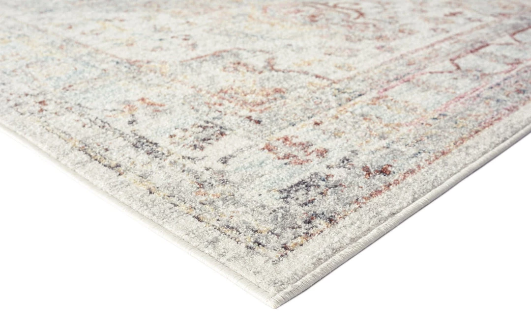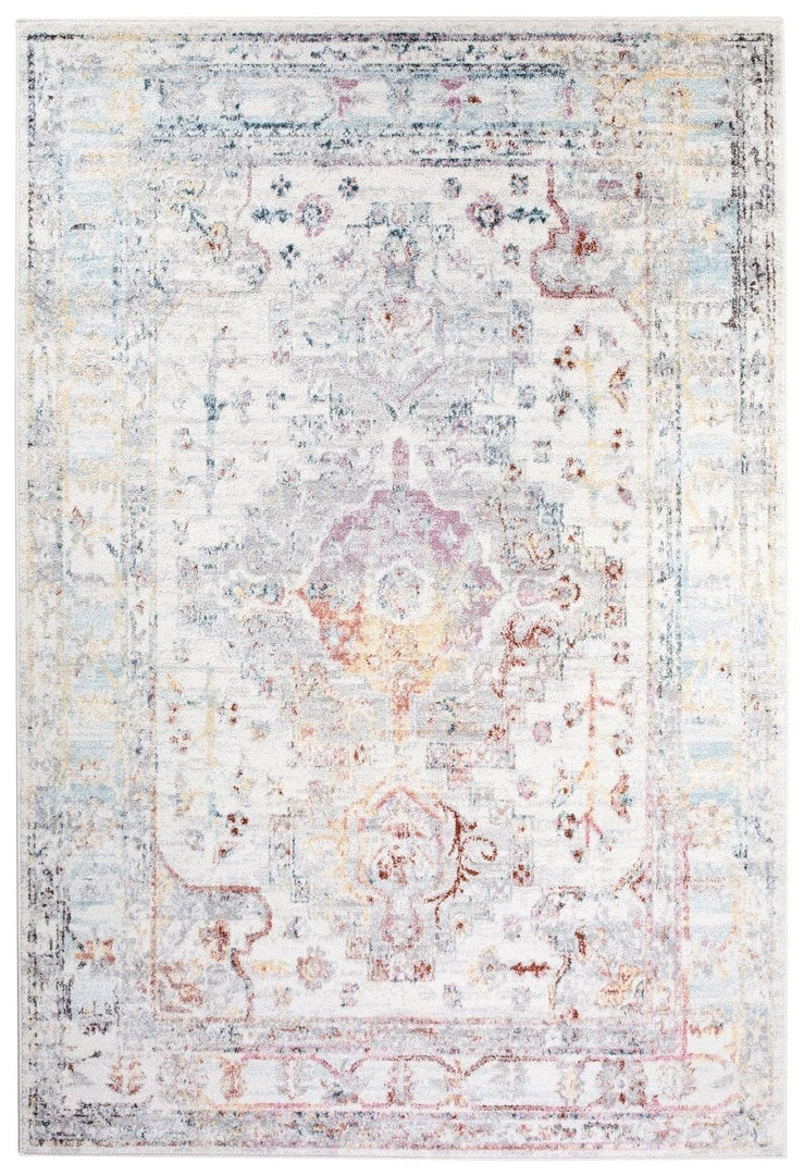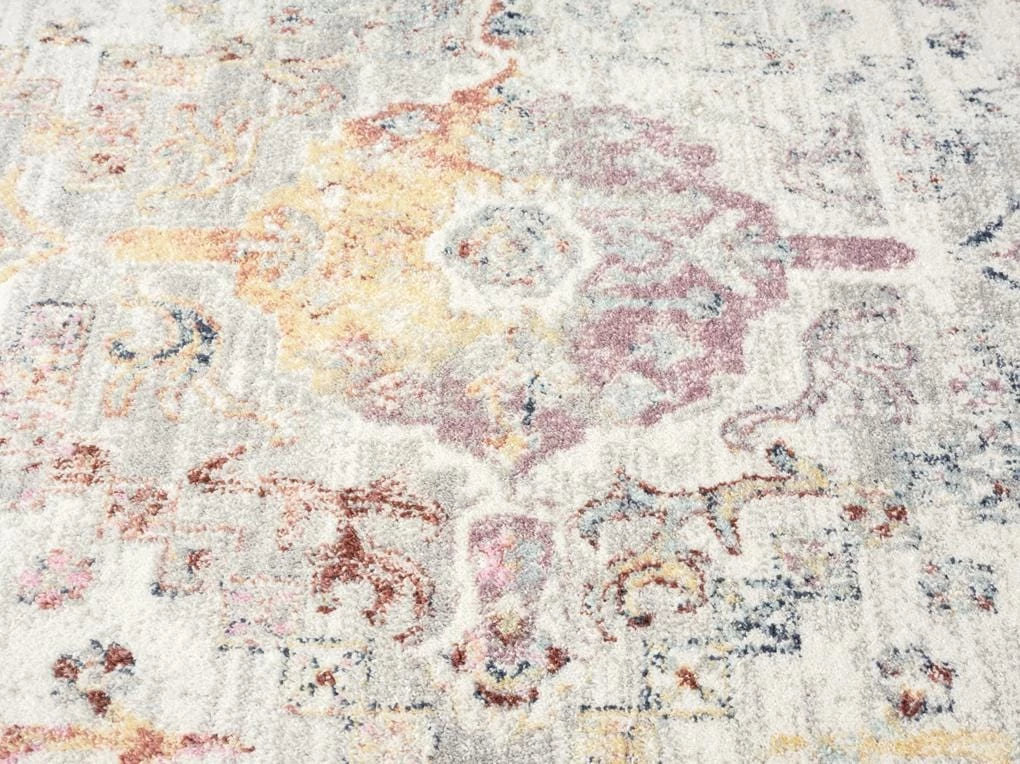 A modern design with an old world charm, Lara is a bordered vintage style that’s decorated with elaborate floral motifs and ornate patterns in transitional multi-tones of cream, purple, blue, yellow and orange. A timeless and elegant addition to a modern, classic, bohemian or vintage space.