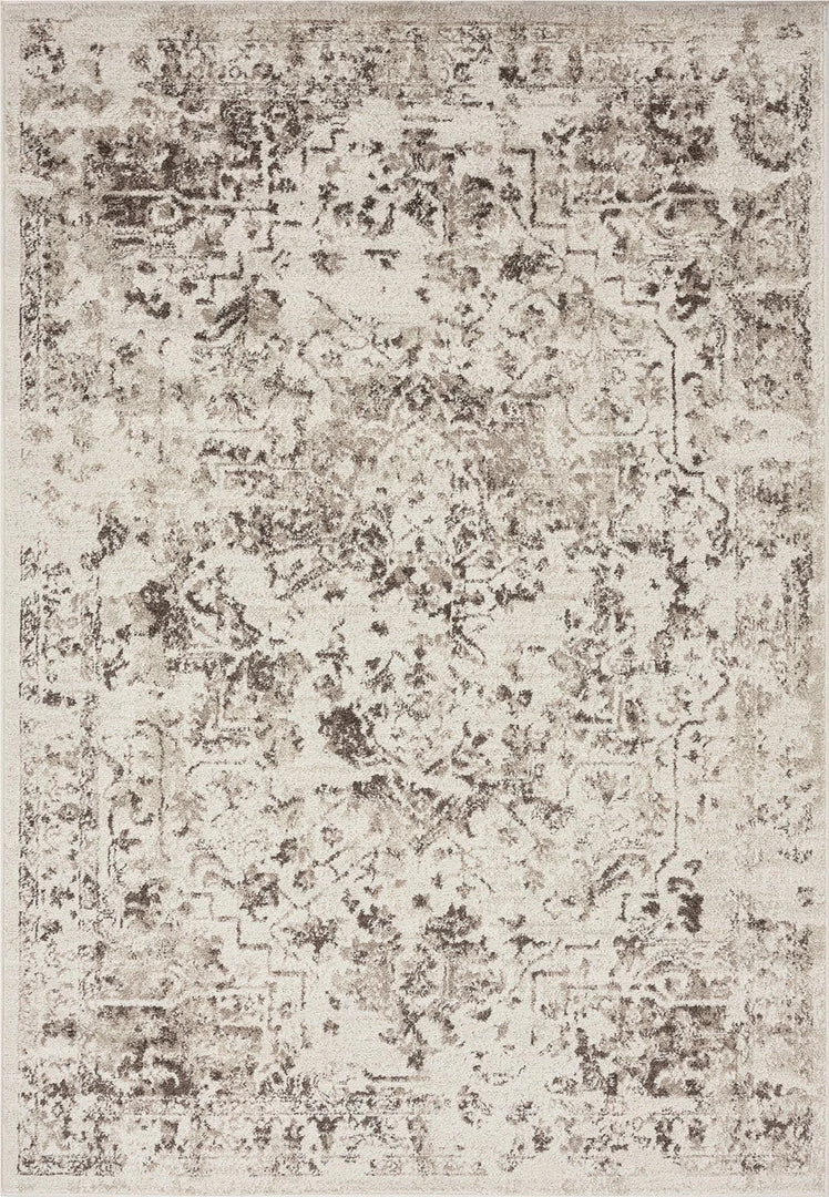 An exclusive design in the Miss Amara Collection, Liliana is a bordered vintage distressed style. Decorated with elaborate floral motifs and ornate patterns in transitional multi-tones of cream and brown. A timeless and elegant addition to a modern, classic, bohemian or vintage space.