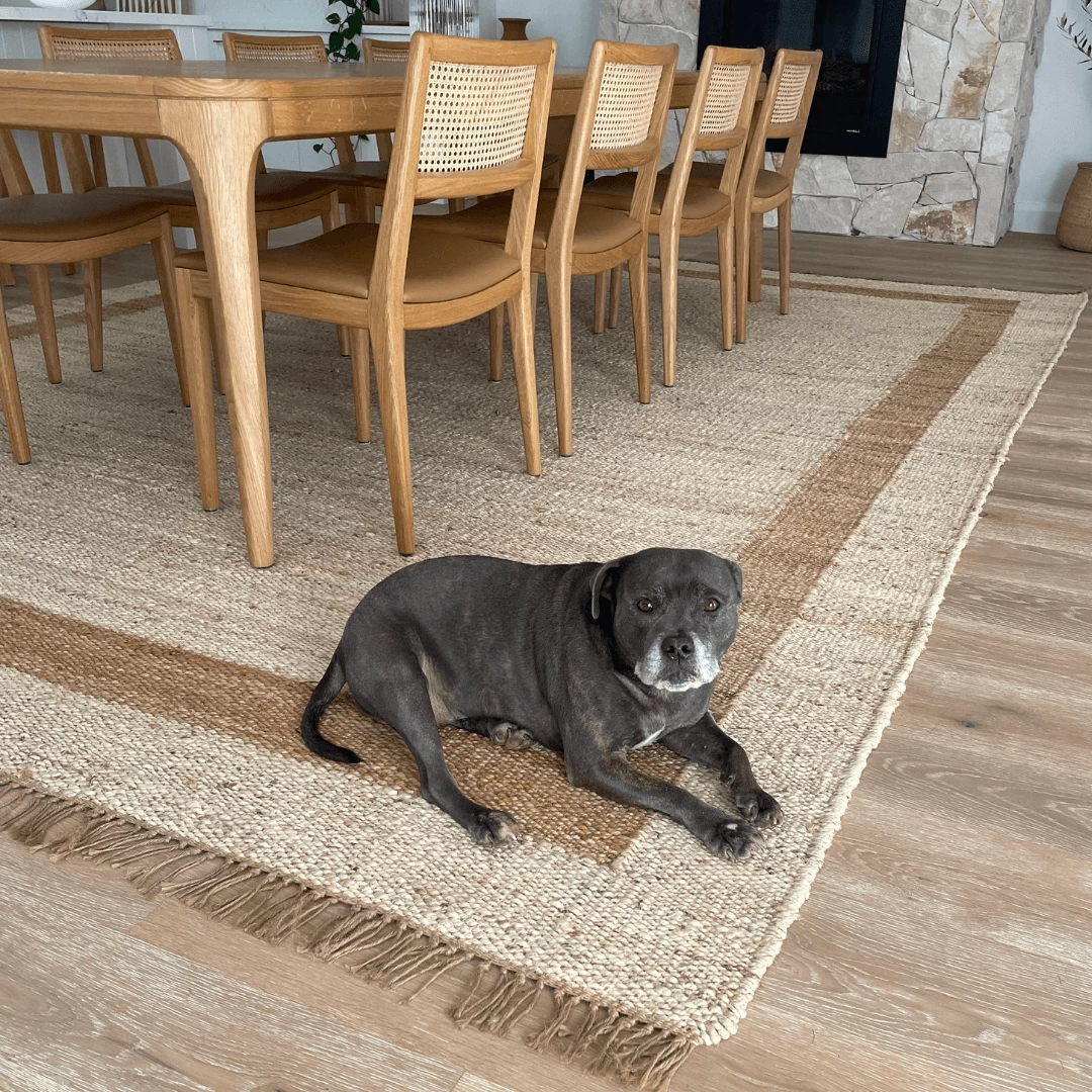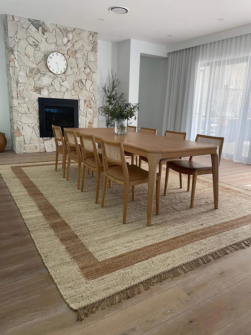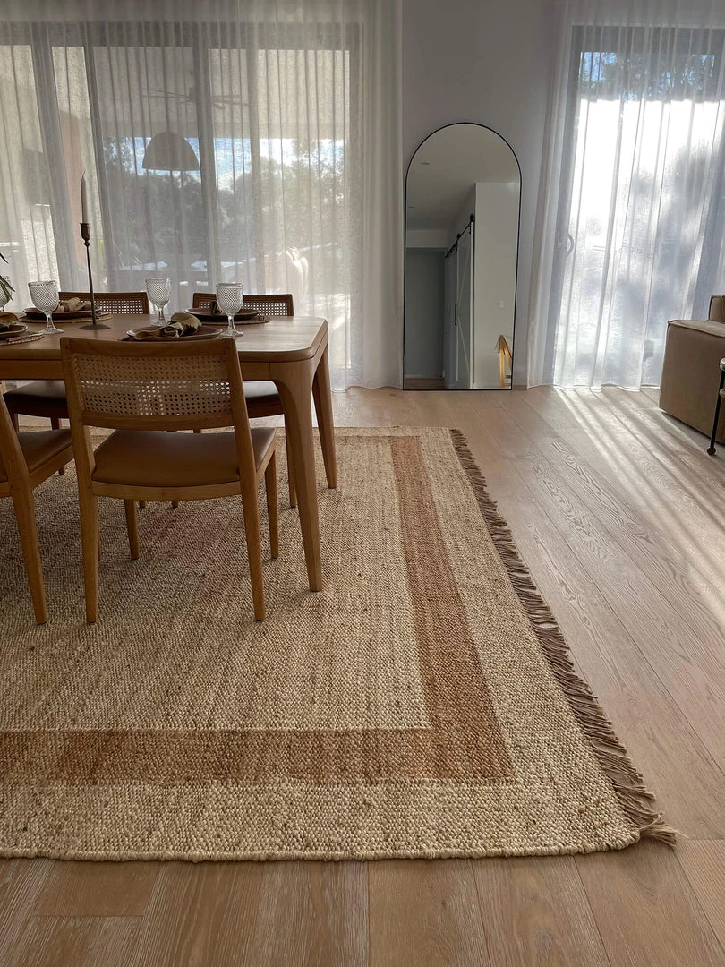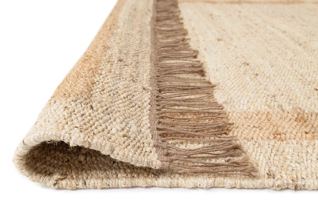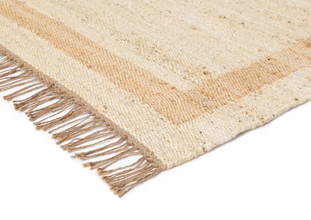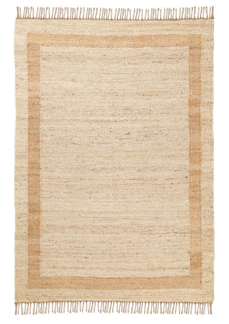 Marnie is a lovely natural and bleached jute rug woven by hand into a bordered design.