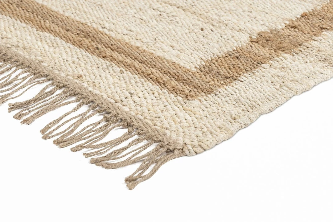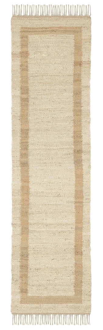 Marnie is a lovely natural and bleached jute runner rug woven by hand into a bordered design.