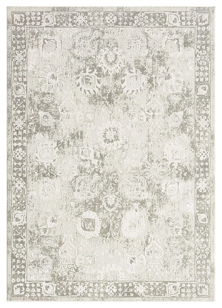 Maxime is a beautiful ivory rug with a traditional bordered floral medallion style in grey.