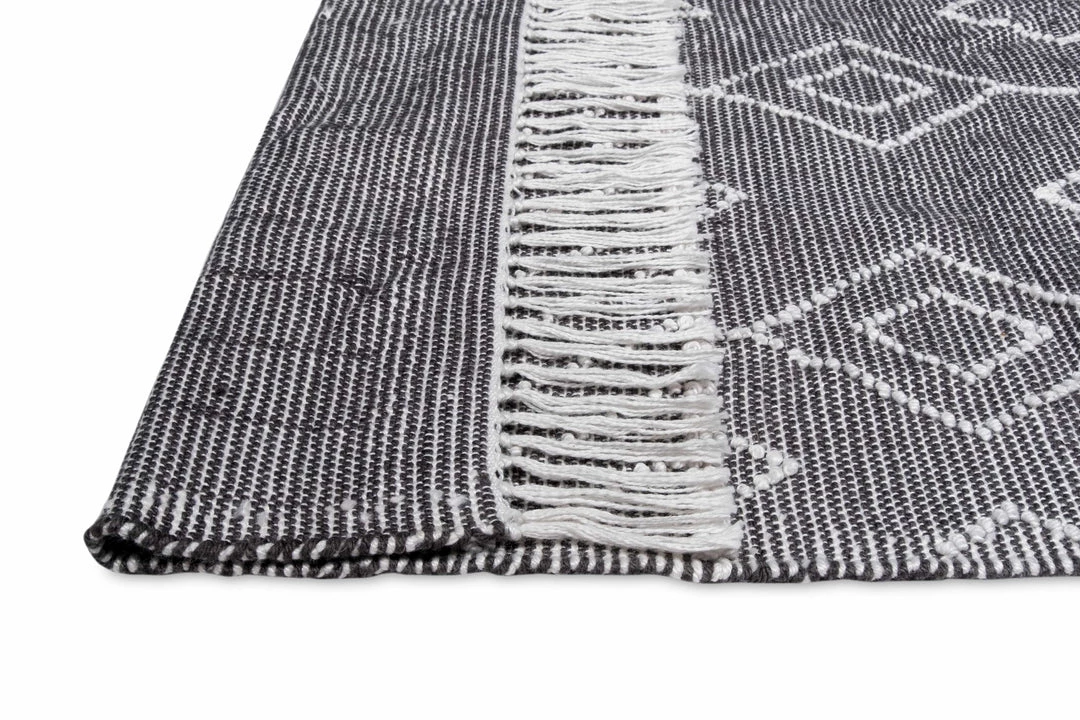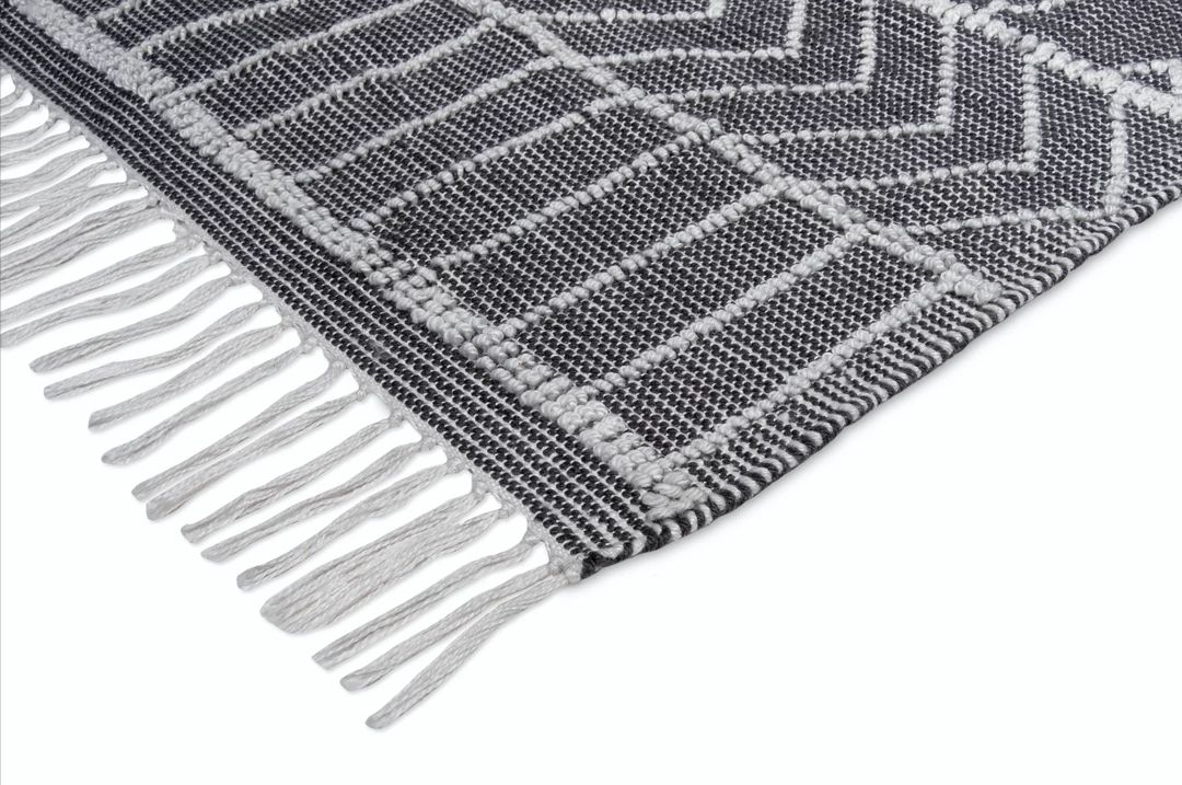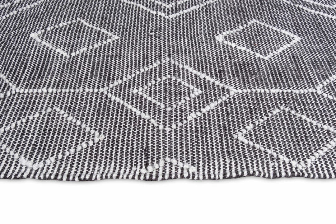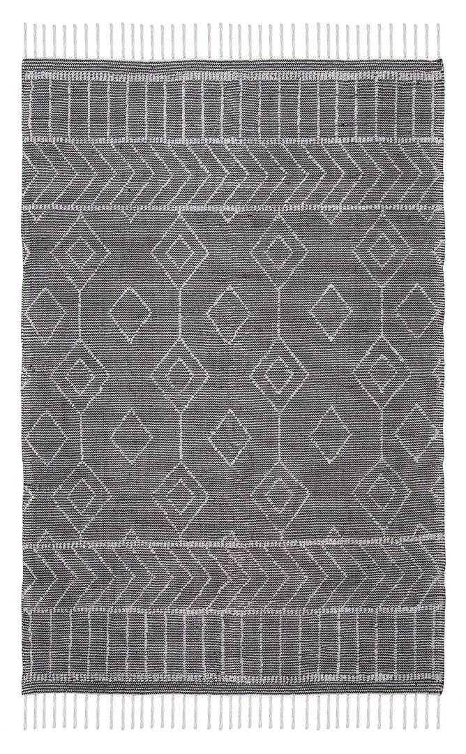 Mirabelle is a gorgeous dark based flatweave rug with a tribal diamond pattern in ivory.