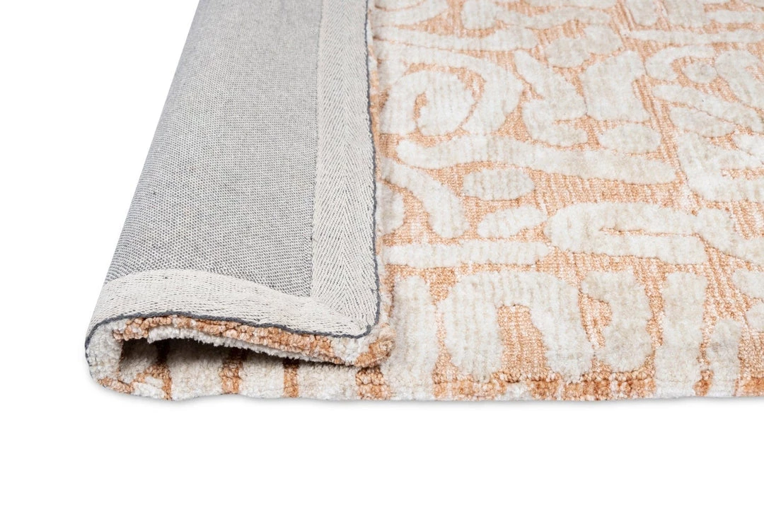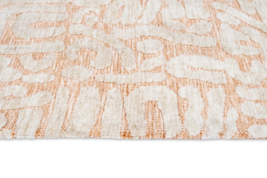 Miranda is a stunning transitional warm peach and ivory cream rug crafted with a unique textured high-low abstract tribal print.