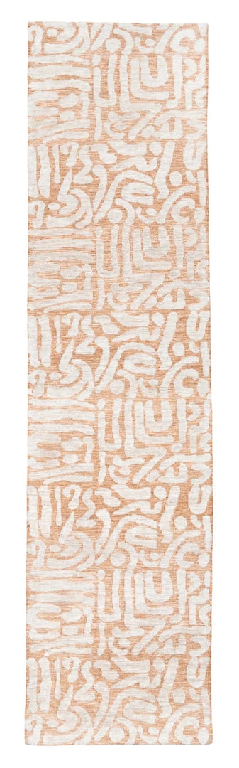 Miranda is a stunning transitional warm peach and ivory cream rug crafted with a unique textured high-low abstract tribal print.