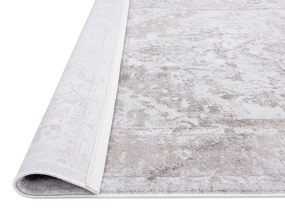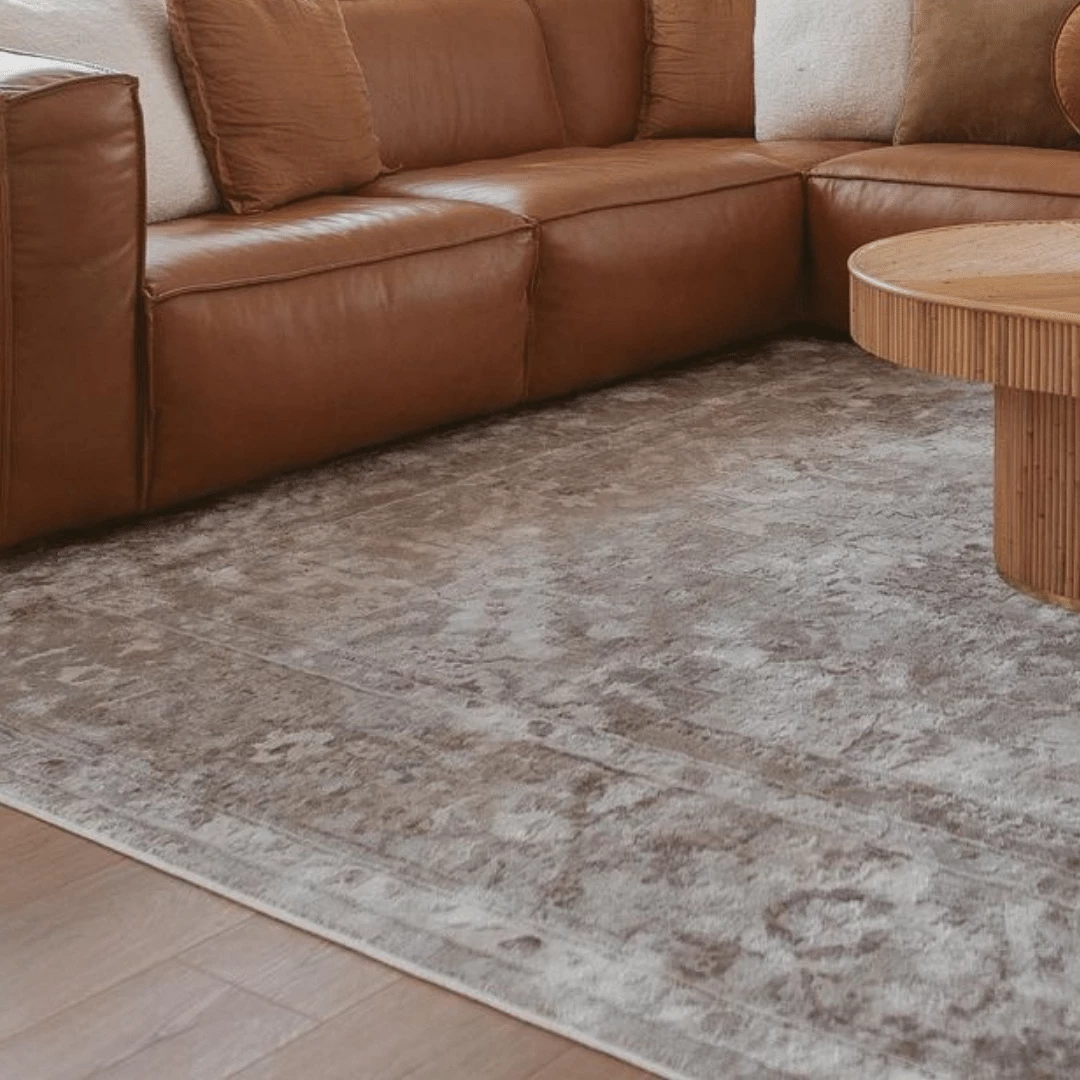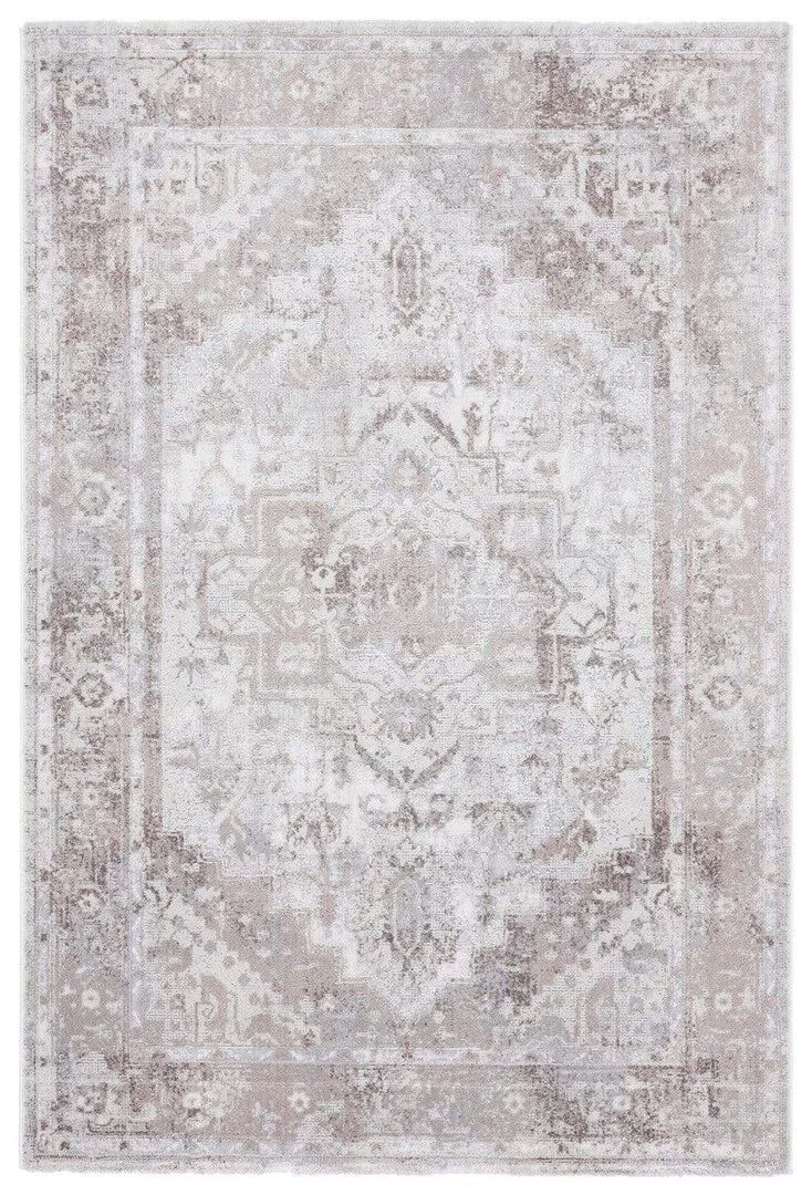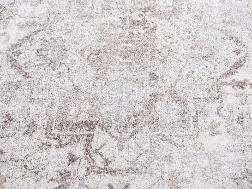 Morgan is an ethereal beige brown and cream transitional distressed medallion rug.