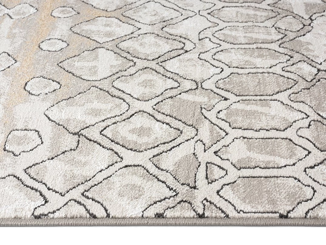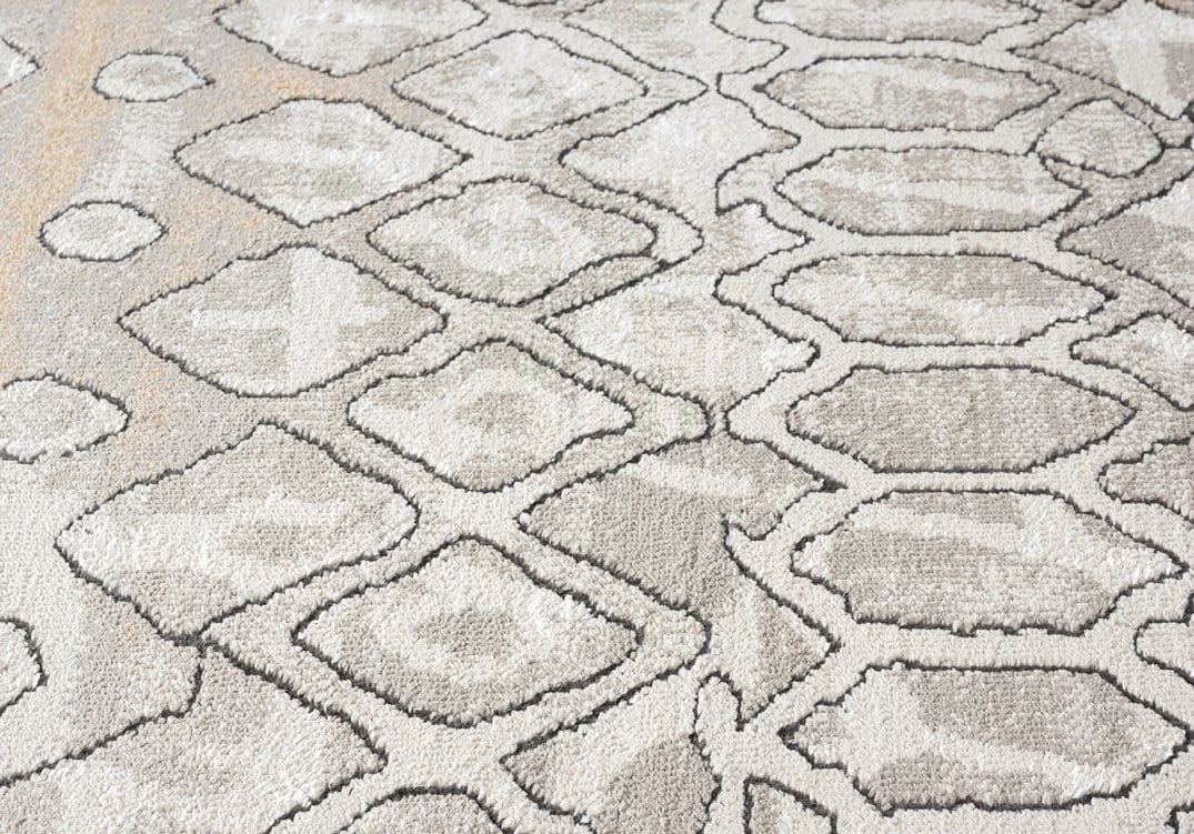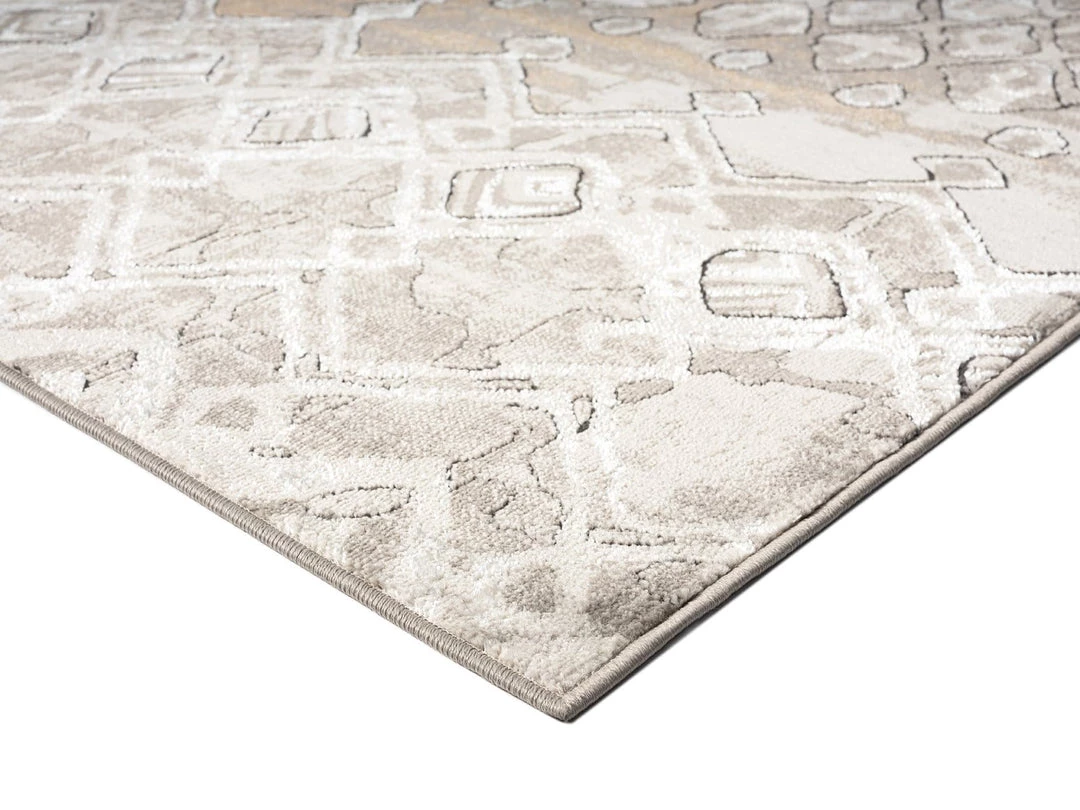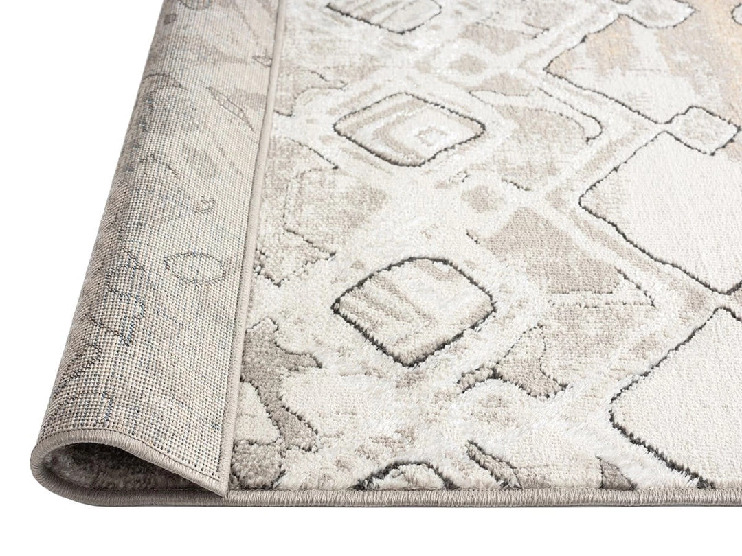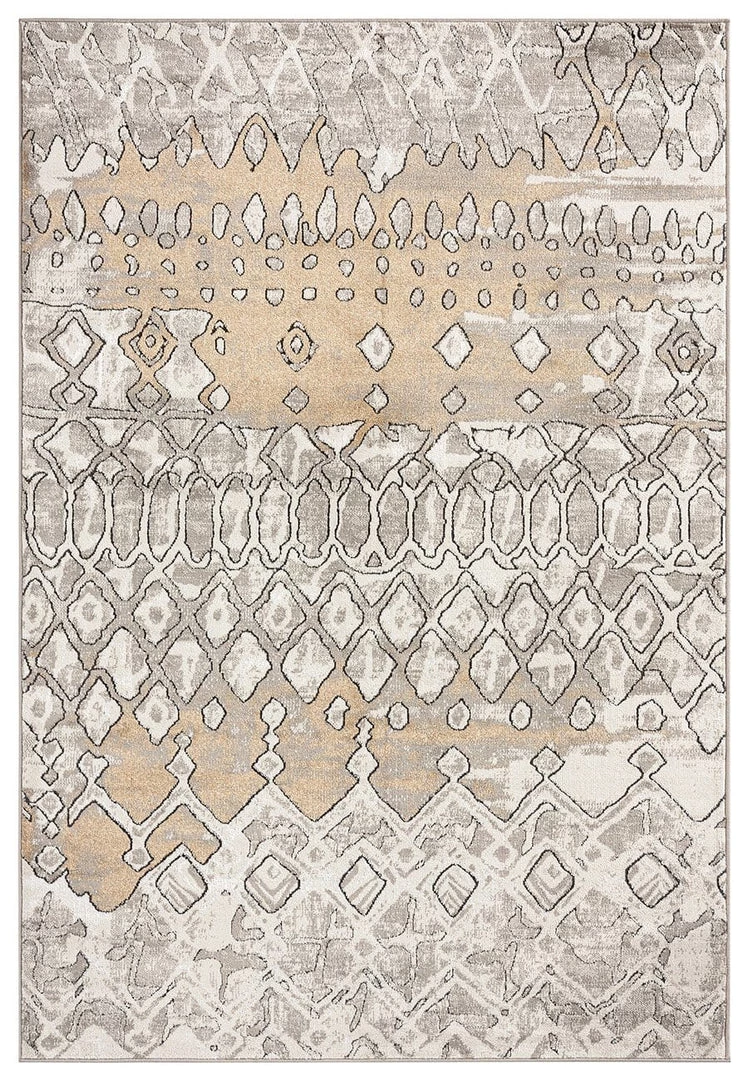 Naavya is a stunning beige, grey and ivory rug in a transitional abstract style tribal pattern.
