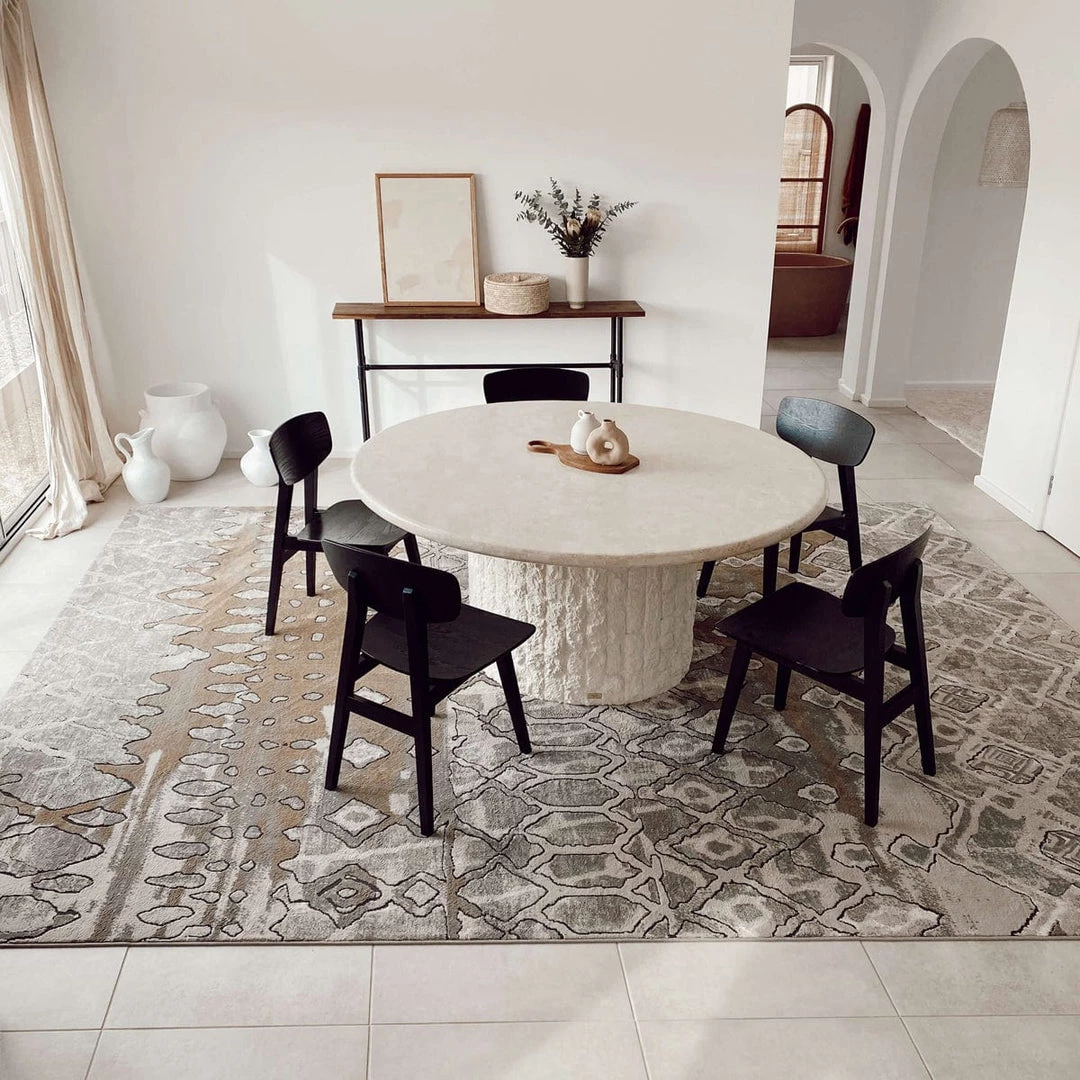 An exclusive design in the Miss Amara Collection, Naavya features a distressed look to give it a vintage feel. Decorated with lined tribal patterns in transitional multi-tones of neutral beige, grey and ivory. A timeless and stylish addition to a modern, tribal, bohemian or vintage space.