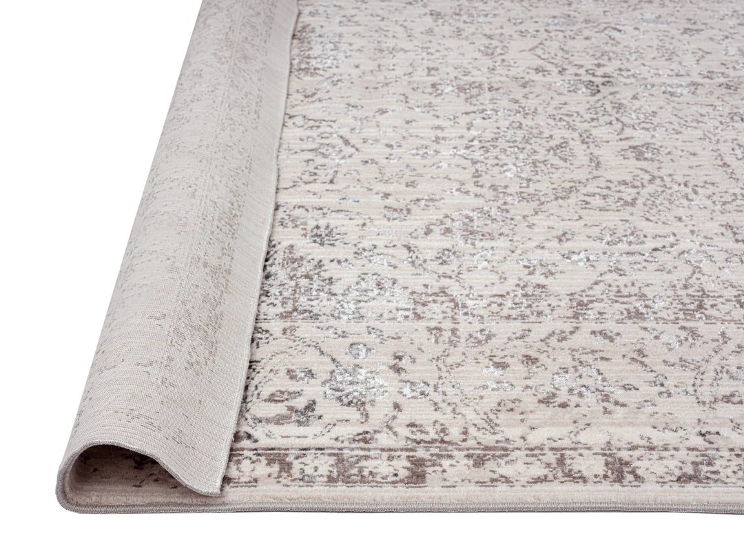 Natasha is a stunning blend of cream and ivory with a traditional style bordered floral design in silver and brown grey multi-tones.