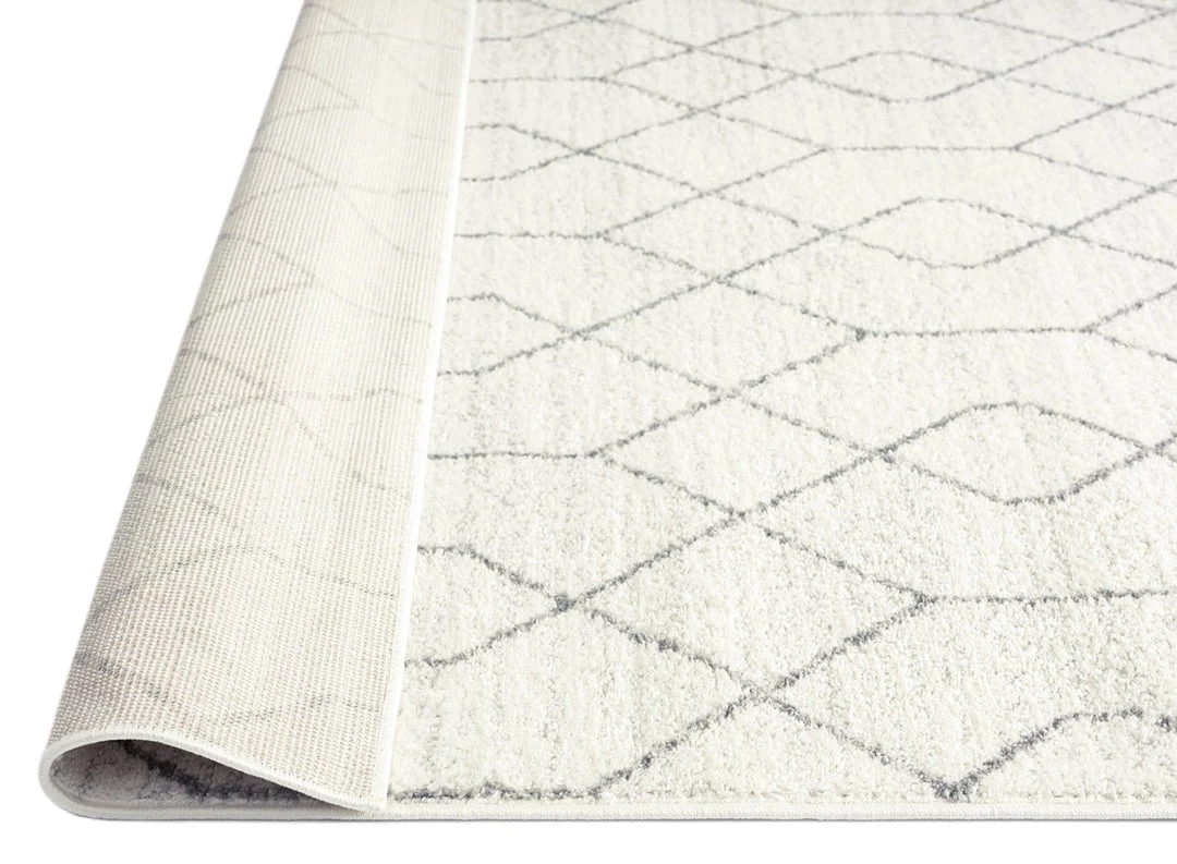 A unique and intricate bold line print with transitional tones of grey and ivory. This high design piece would blend beautifully in a modern, tribal, scandi or coastal-inspired interior.