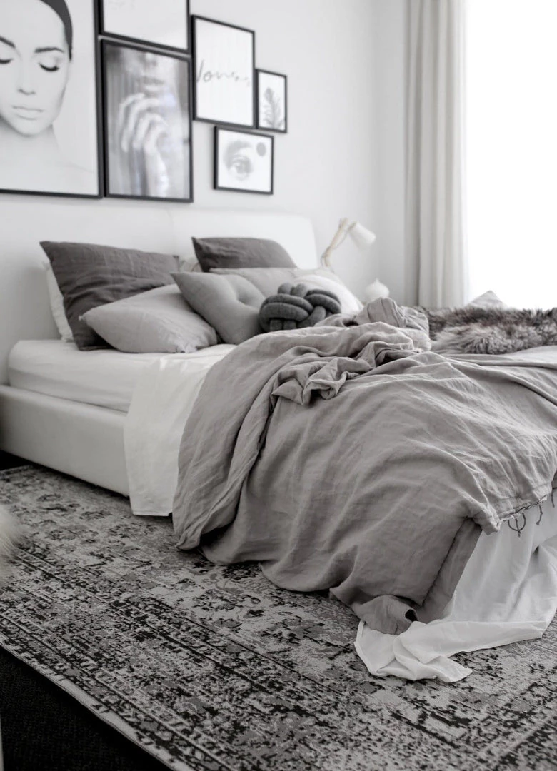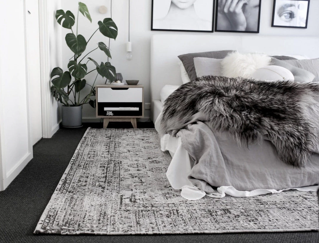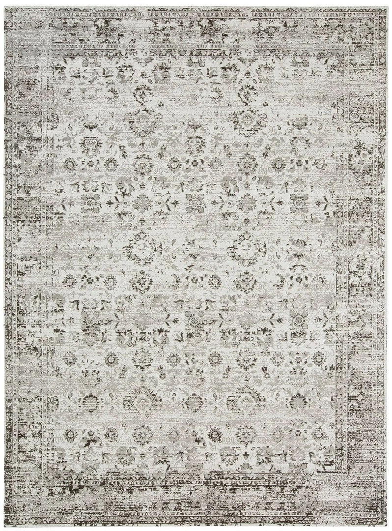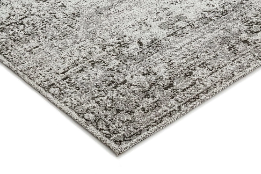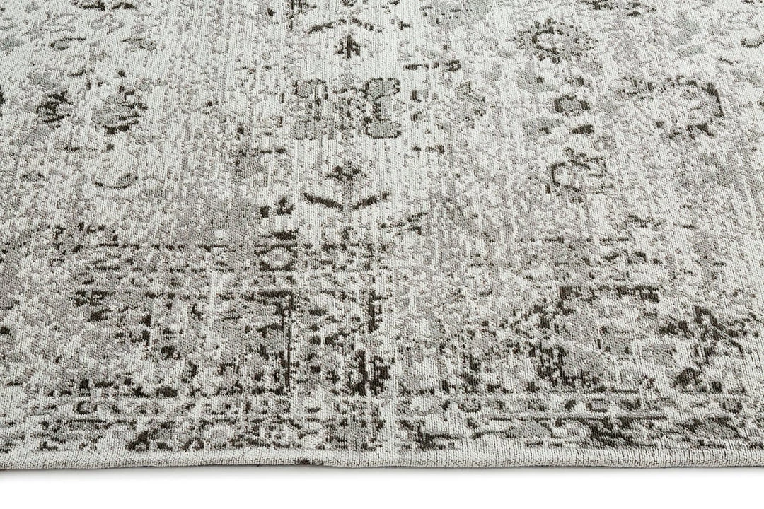 A truly unique design piece, Nousha is a flatweave style transitional rug featuring a muted grey colourway and traditional bordered floral design.