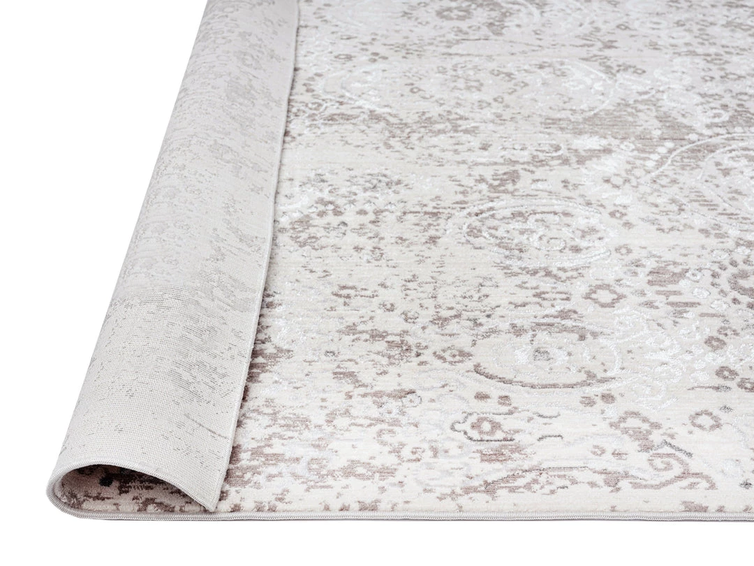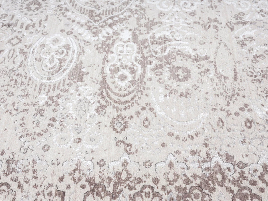 An exclusive design in the Miss Amara Collection, Poppy is a vintage distressed style runner rug topped with elaborate floral motifs and patterns in multi-tones of brown and grey. Embellished with luxurious touches of silver for added sheen and dimension.