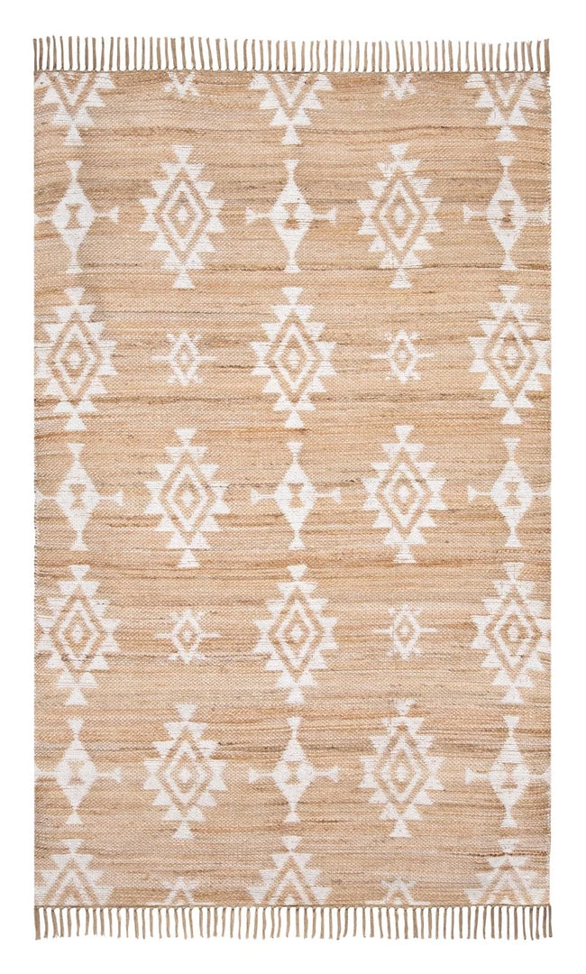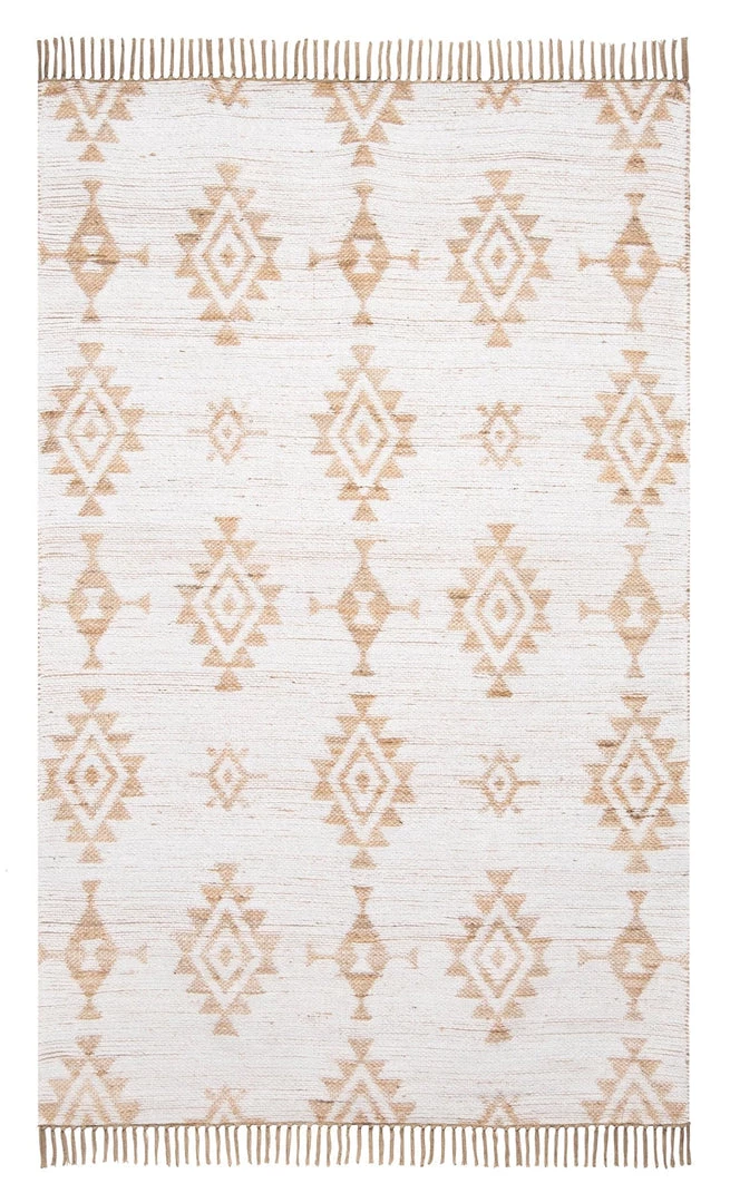 Quincy is a gorgeous natural brown jute rug with a tribal diamond pattern in white.