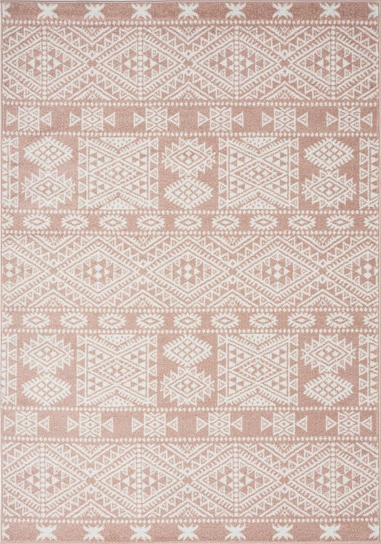 Rita is a lovely blush peach and ivory pattern rug with a unique tribal pattern.