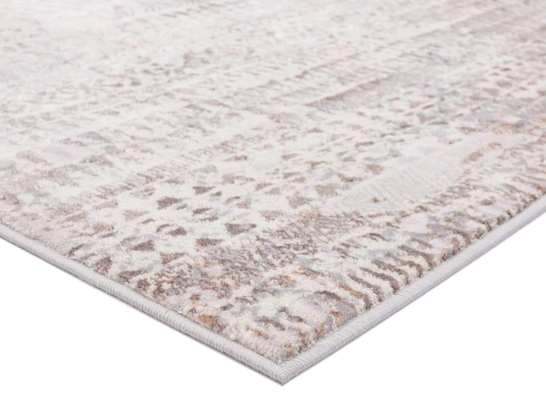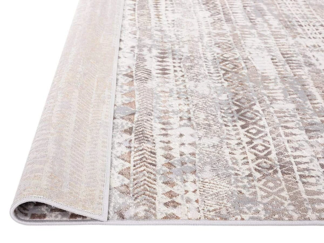 Selma is a beautiful grey rug with a distressed modern tribal print in ivory and brown.
