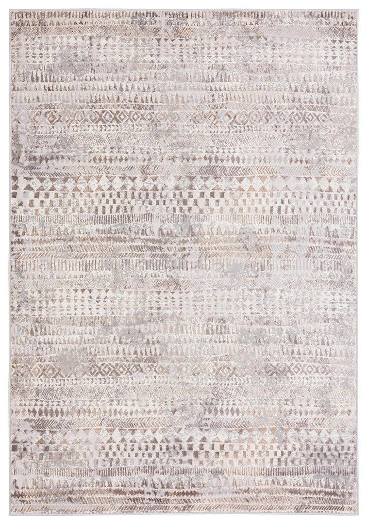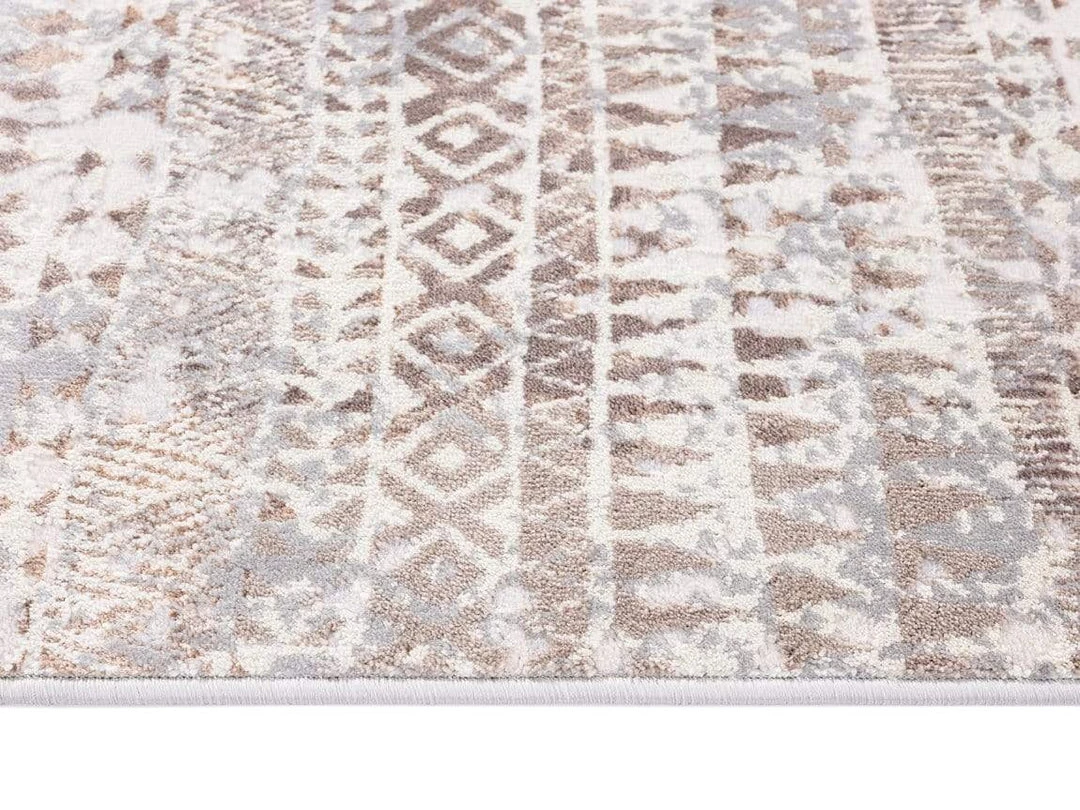 An exclusive design in the Miss Amara Collection, Selma features a faded effect to give it a slightly distressed feel. Decorated with abstract lined tribal patterns in transitional multi-tones of ivory and brown. A unique design piece to a modern, tribal or bohemian space.