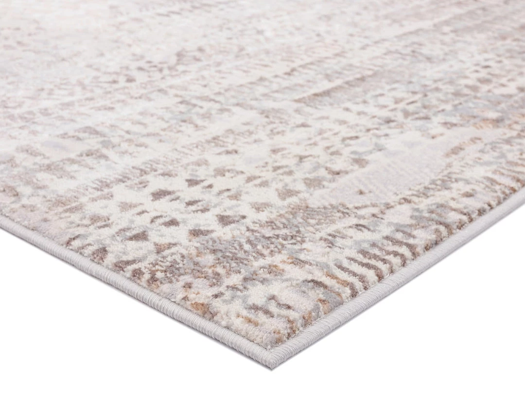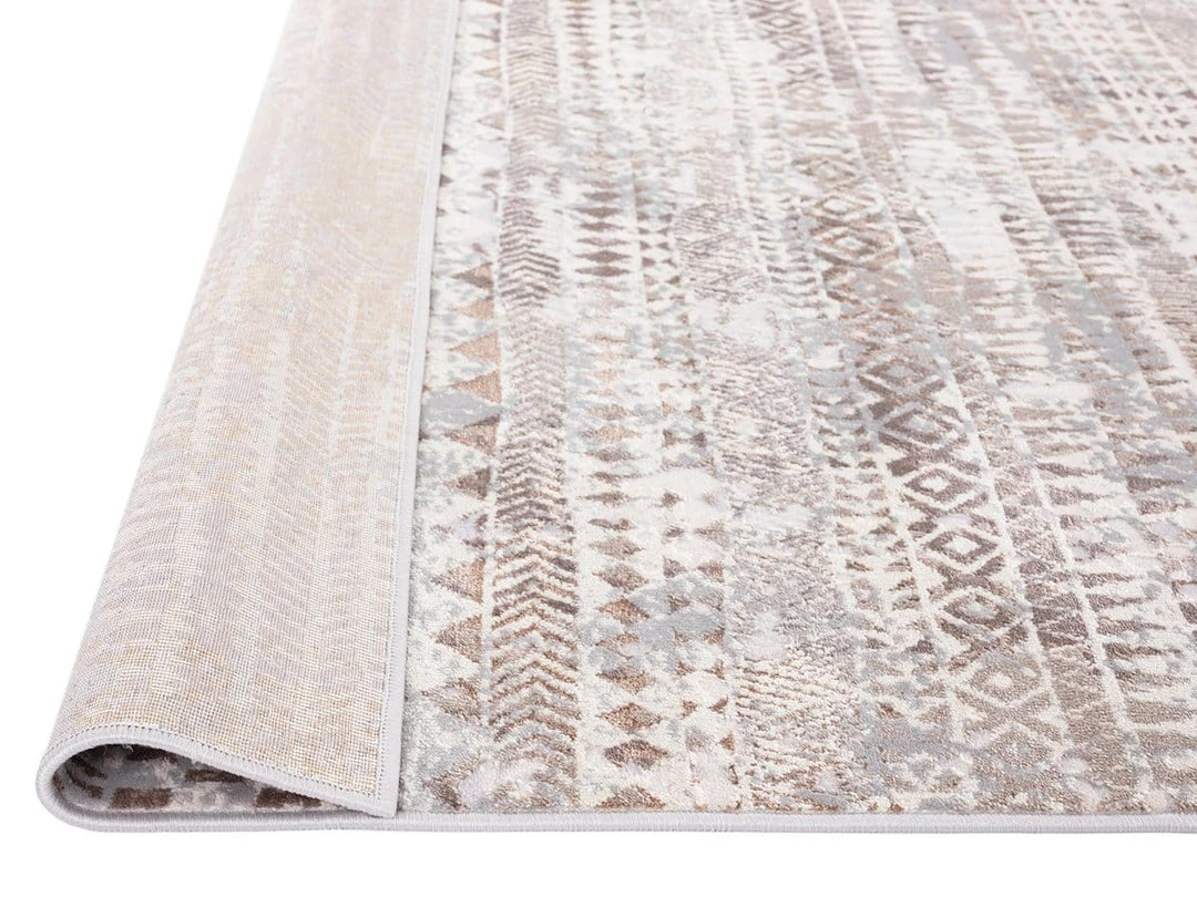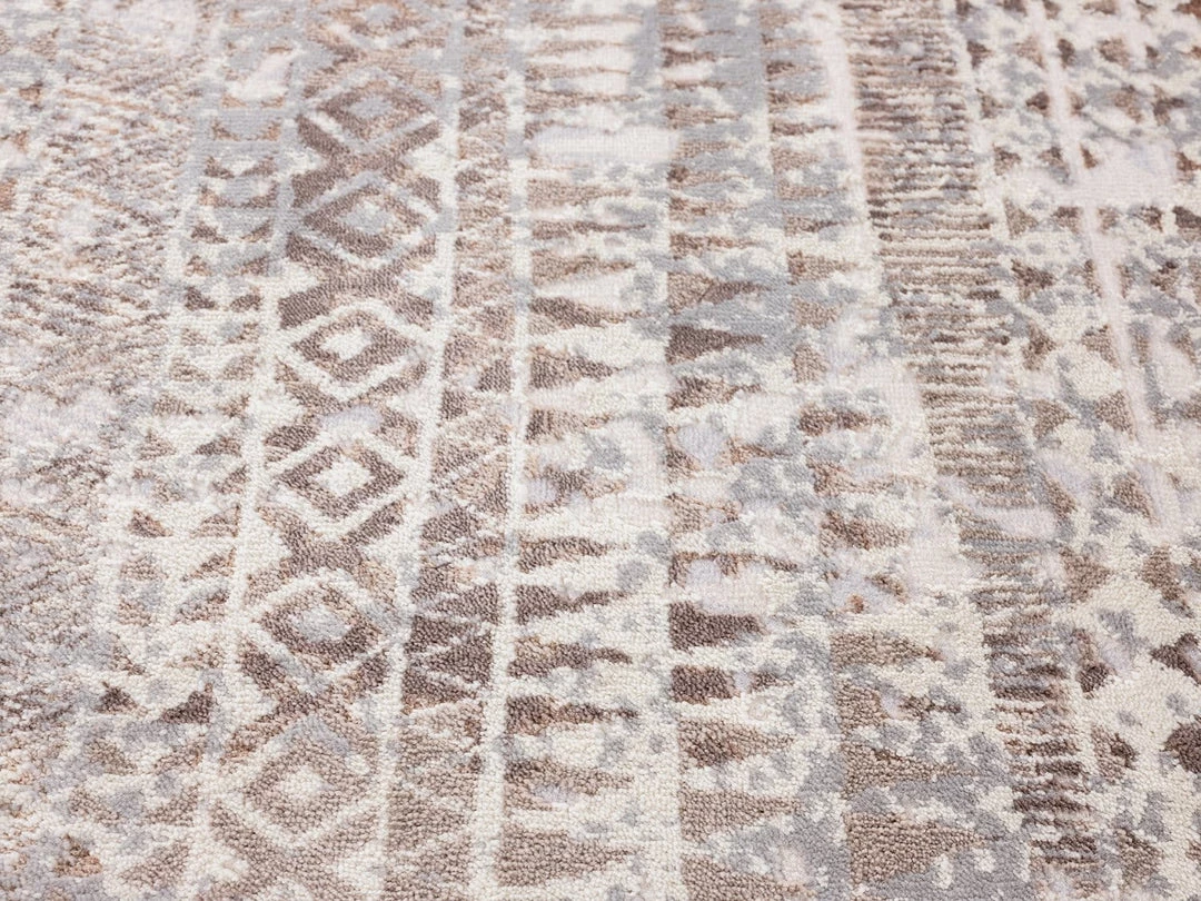 An exclusive design in the Miss Amara Collection, Selma features a faded effect to give it a slightly distressed feel. Decorated with abstract lined tribal patterns in transitional multi-tones of ivory and brown. A unique design piece to a modern, tribal or bohemian space.
