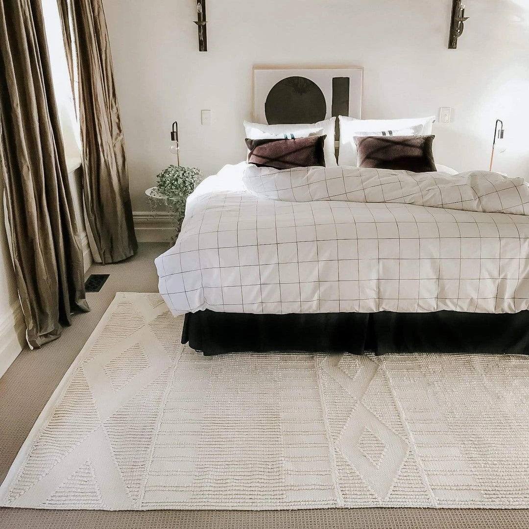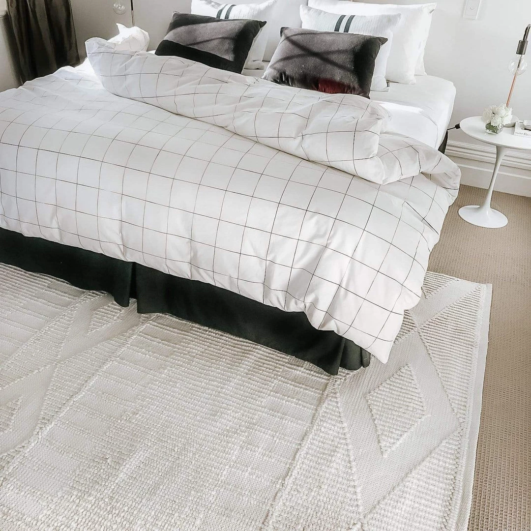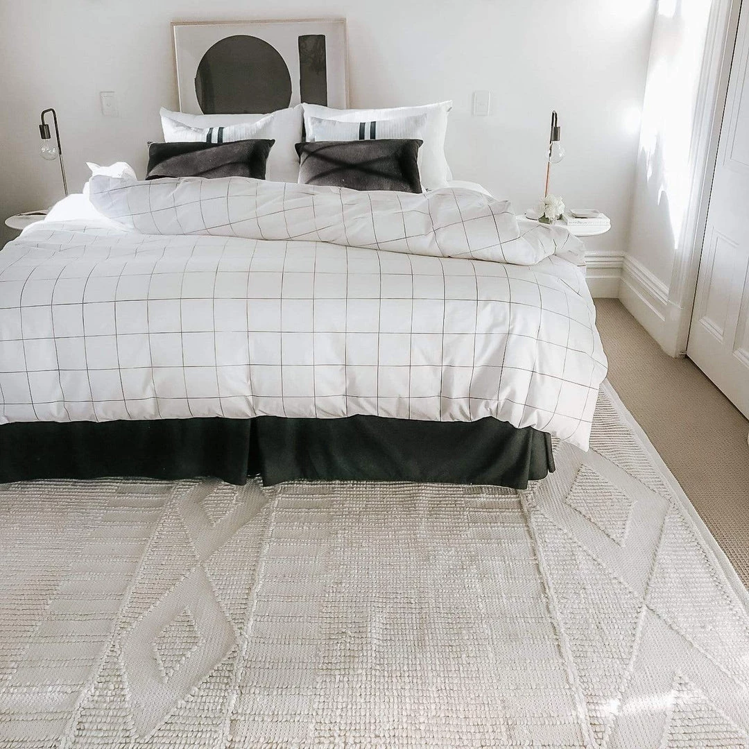 Part of our Tribe Miss Amara Collection, Shaka is a tribal inspired flatweave rug in ivory and made from 100% recycled PET fibres. Handwoven in India by skilled artisans, Shaka features a sophisticated natural ivory colour and simple tribal pattern embossed into the tactile looped pile.