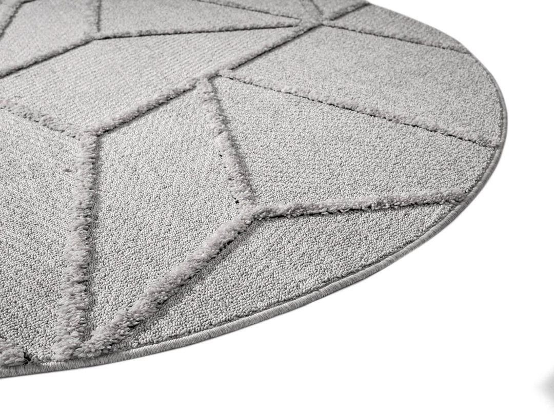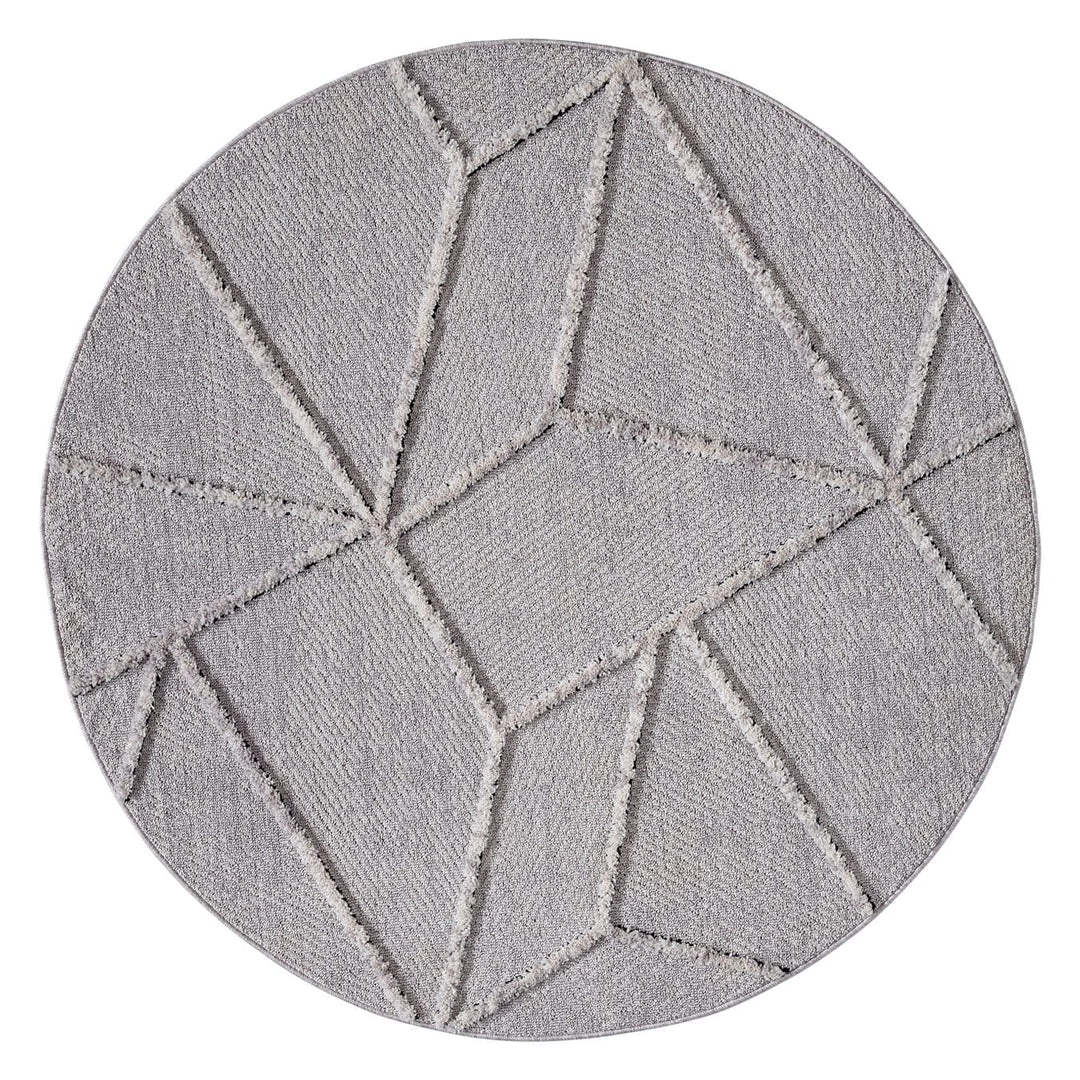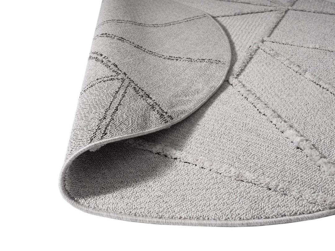 Soraya is an elegant blue-based charcoal grey flatweave round rug with an intricate abstract pattern.