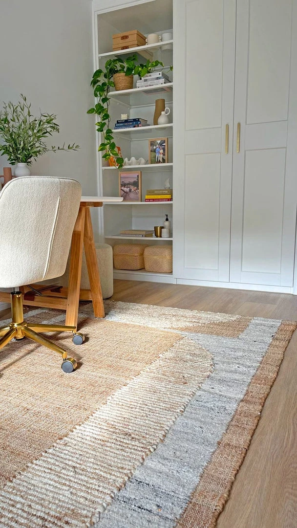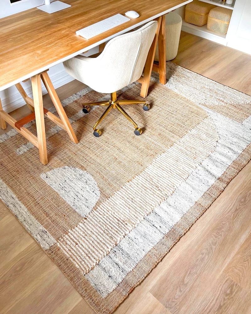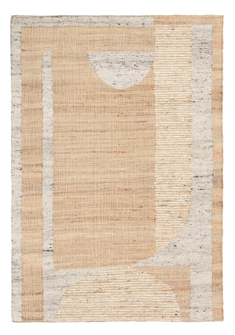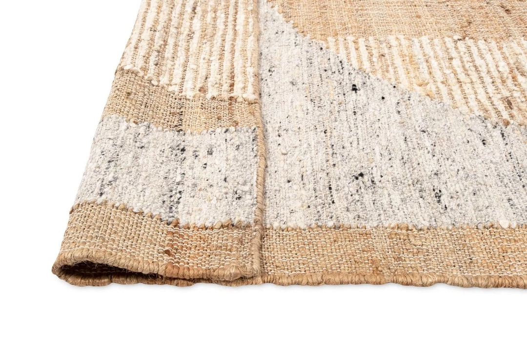 Soto is a stunning brown jute rug with a cotton wool modern geometric pattern in a blend of cream and grey.