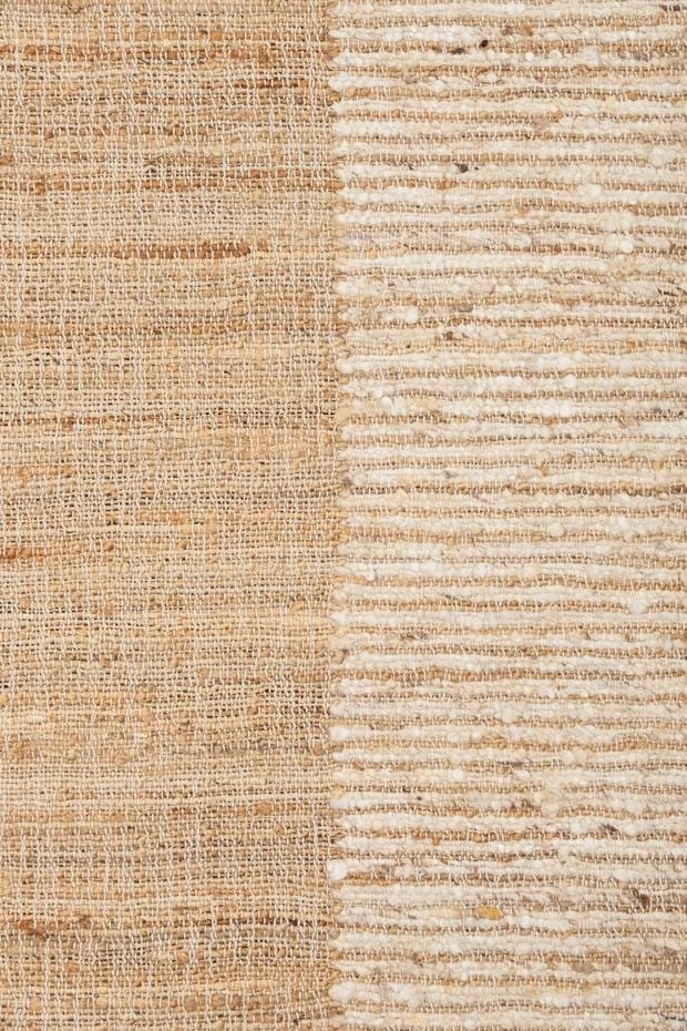Hand-woven in India into a flatweave made from 50% jute, 30% wool and 20% cotton fibres.