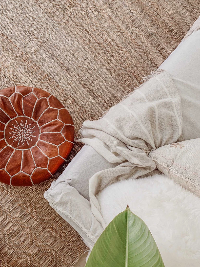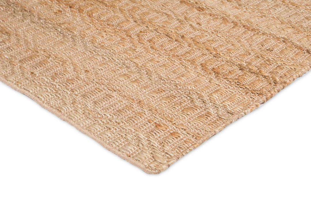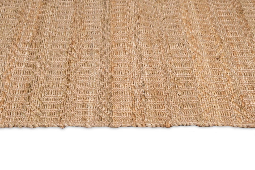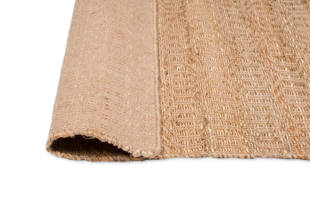 Stevie is a natural textured beauty, an undyed jute rug woven by hand into an intricate diamond tribal pattern.