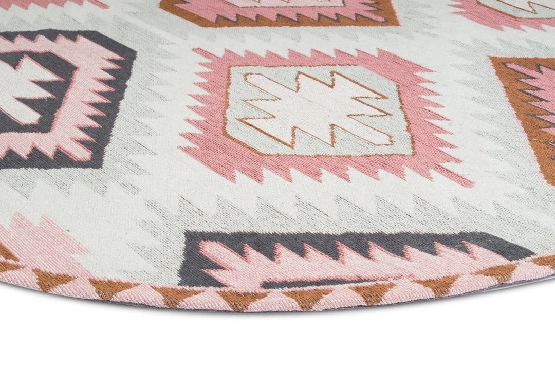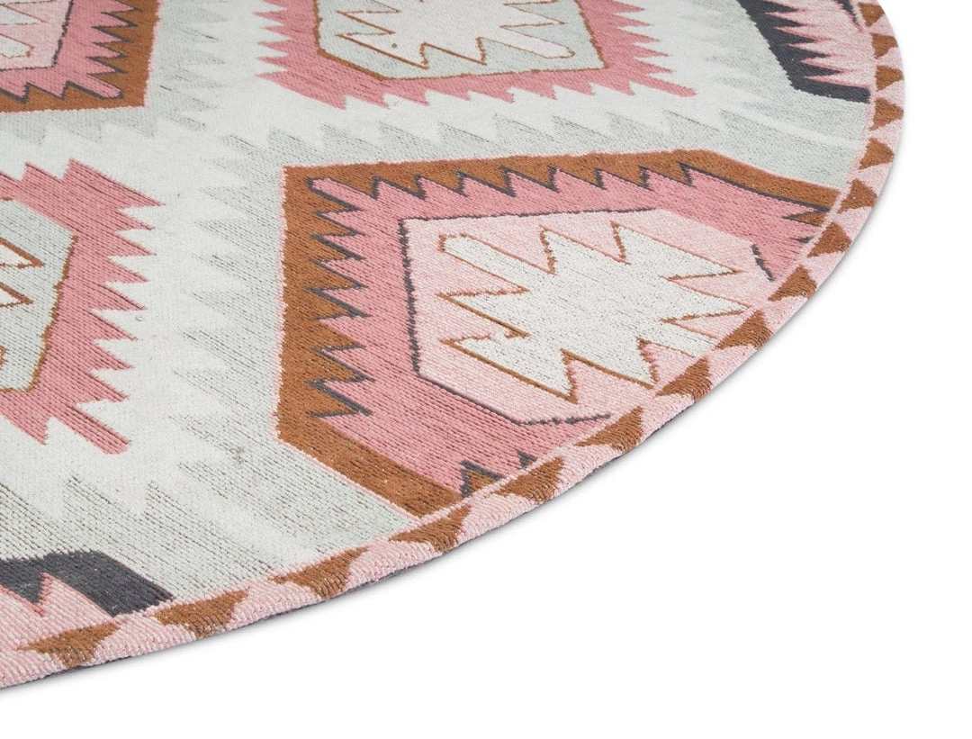 Featuring gorgeously muted pink and aqua shades set against a traditional tribal pattern, Suzie round rug is the rug of our pastel dreams. A beautiful addition to your hallway or kitchen island – any place where you’d like to add a design statement.