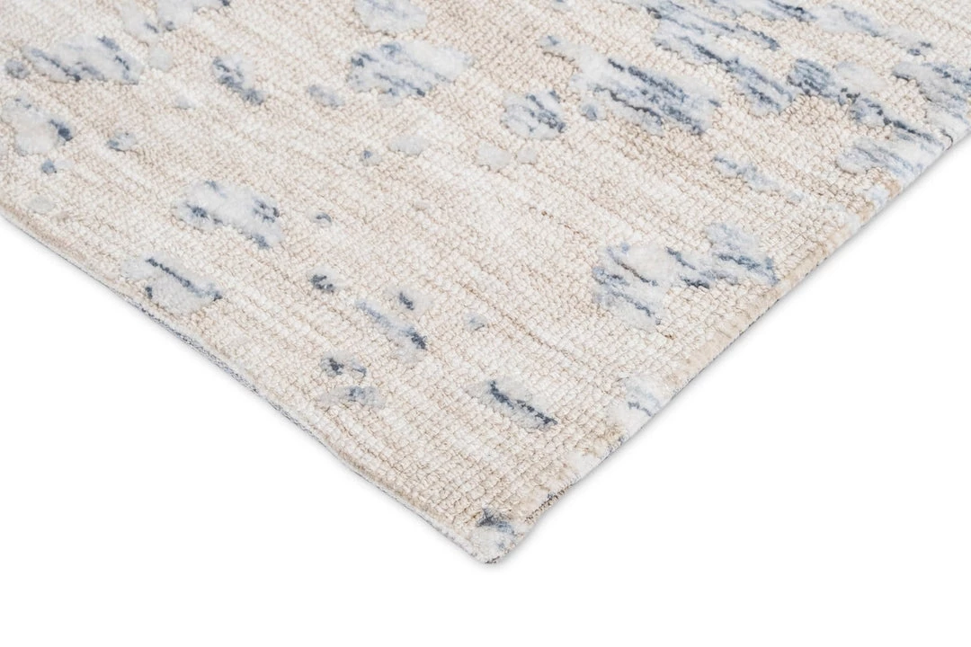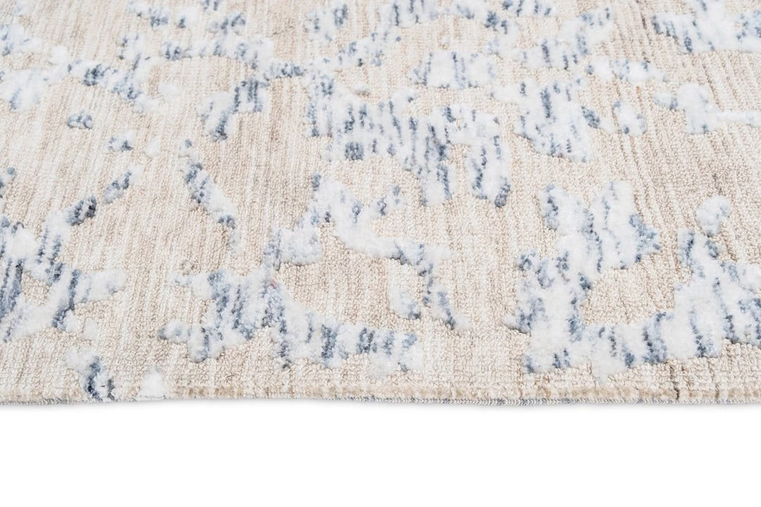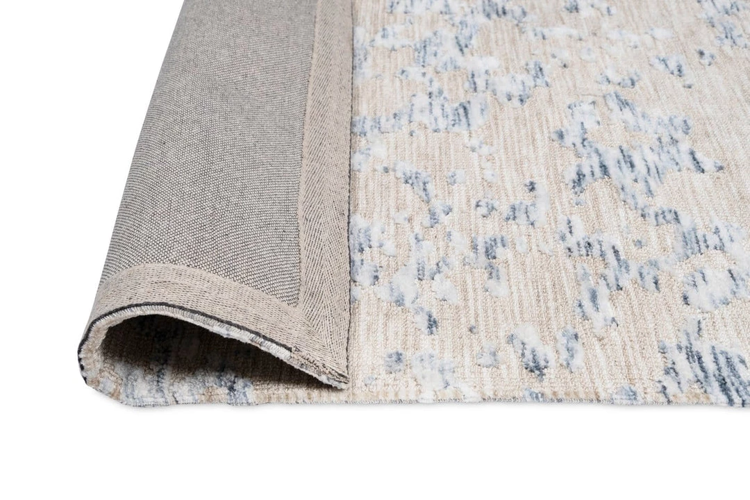 Sylvie is a stunning transitional rug with an abstract floral print and border in blue ivory tones with a cream background.