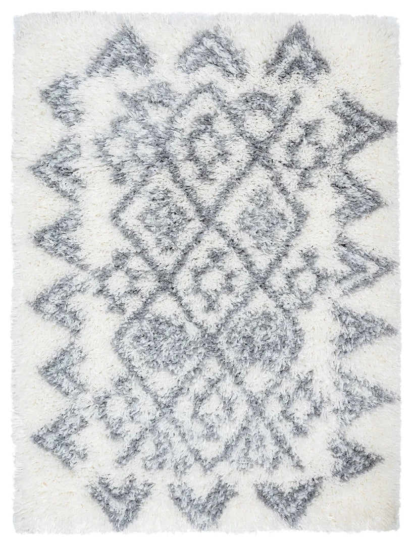 Tahnee is a stunning ivory shag style indoor mat with a tribal pattern in multi-tones of grey.