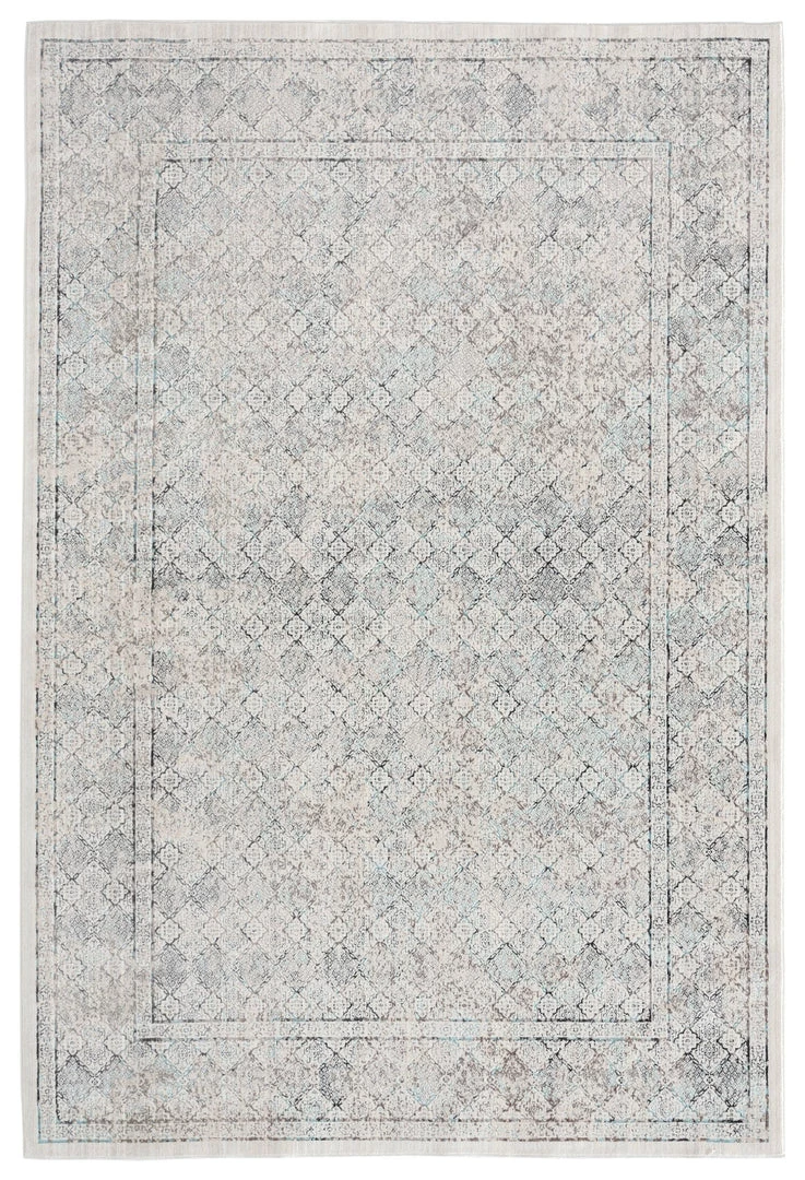 An exclusive design in the Miss Amara Collection, Tallulah is a vintage distressed style rug topped with elaborate floral motifs and stunning diamond patterns in multi-tones of brown, grey and blue. Embellished with luxurious touches of silver for added sheen and dimension.