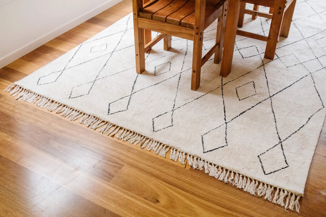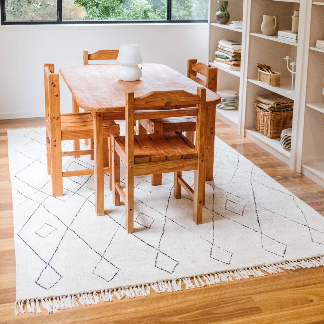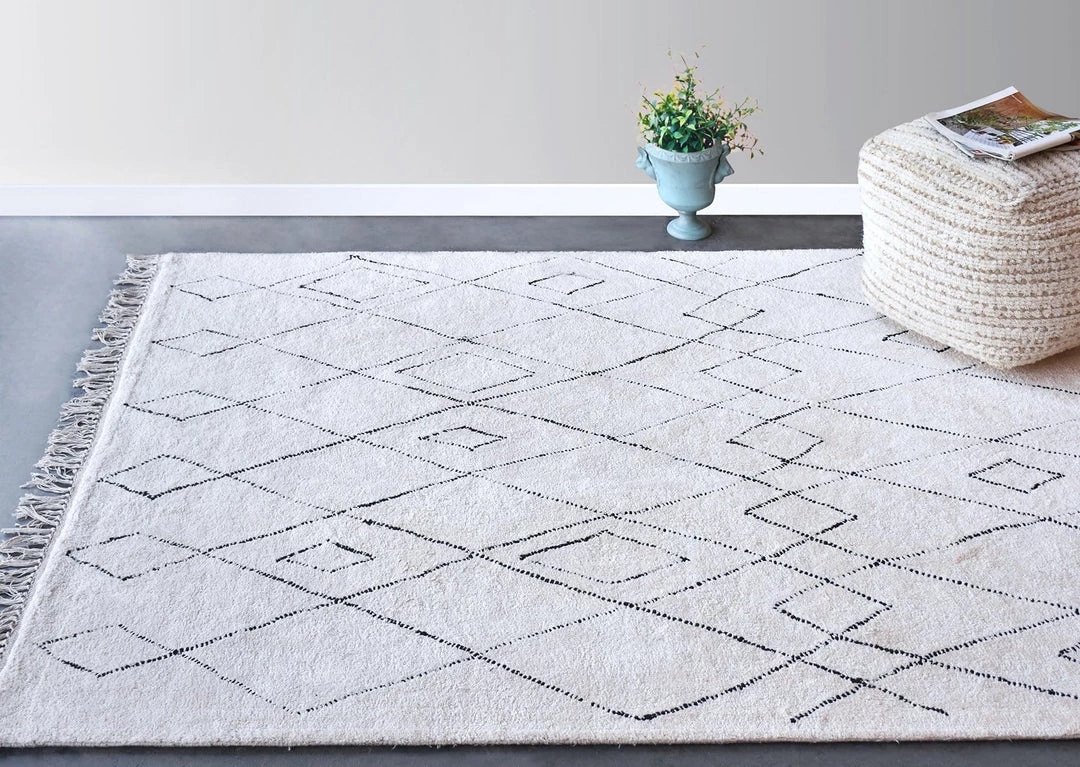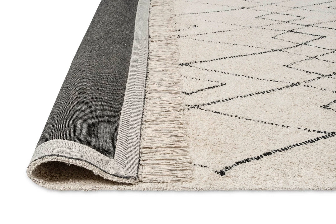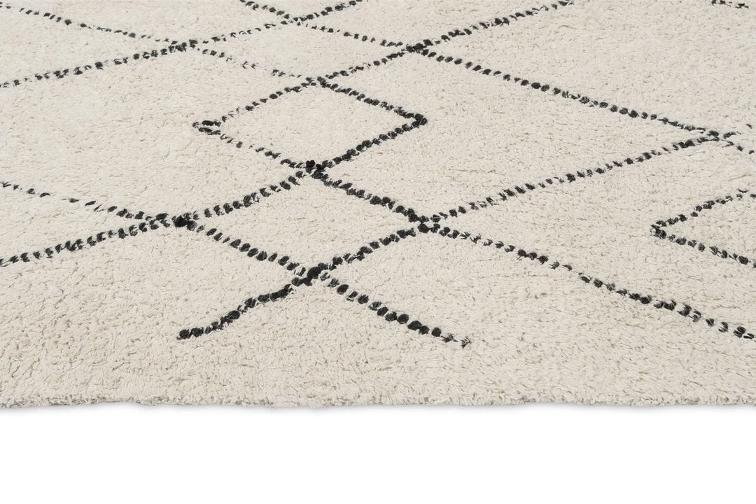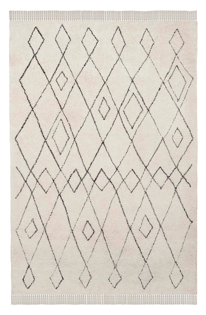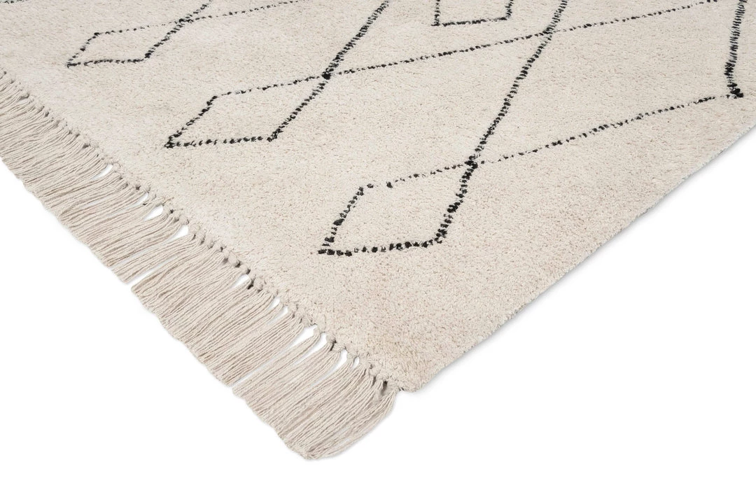 A statement piece from our Miss Amara Tribe Collection, Tamala is a stunning monochrome rug in white with a simple diamond pattern, made from 100% natural cotton. With a base of crisp white, Tamala features a refined oversized diamond pattern in contrasting black and is finished with white tassel fringing.