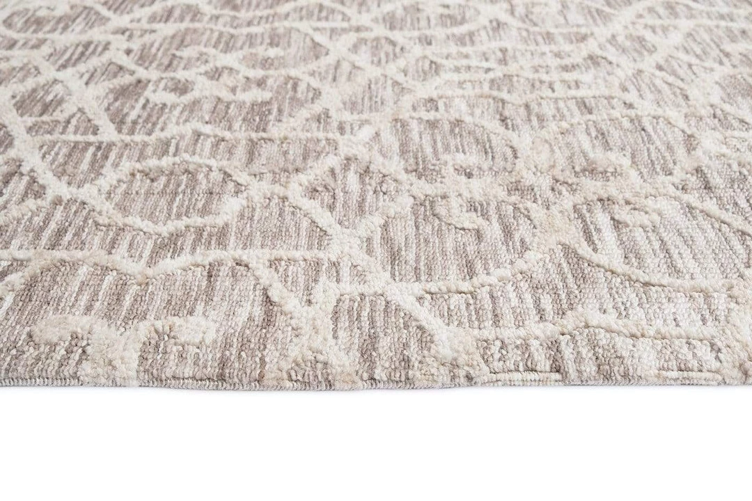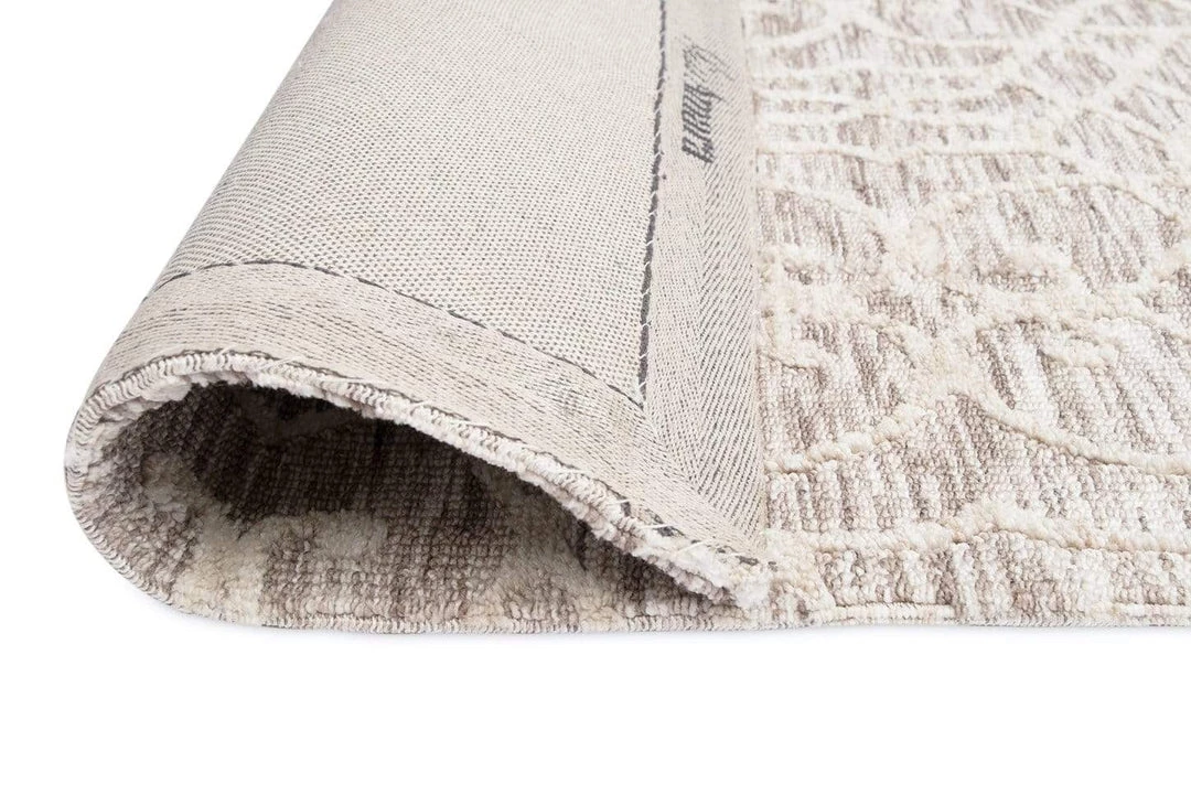 Tori is a stunning textured cream and brown based rug with carved floral geometric print in ivory multi-tones.