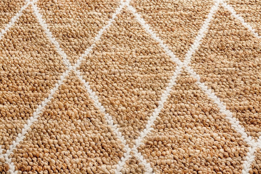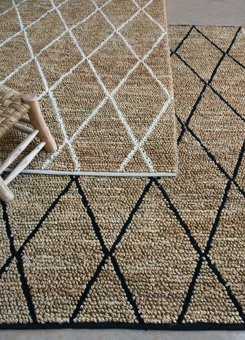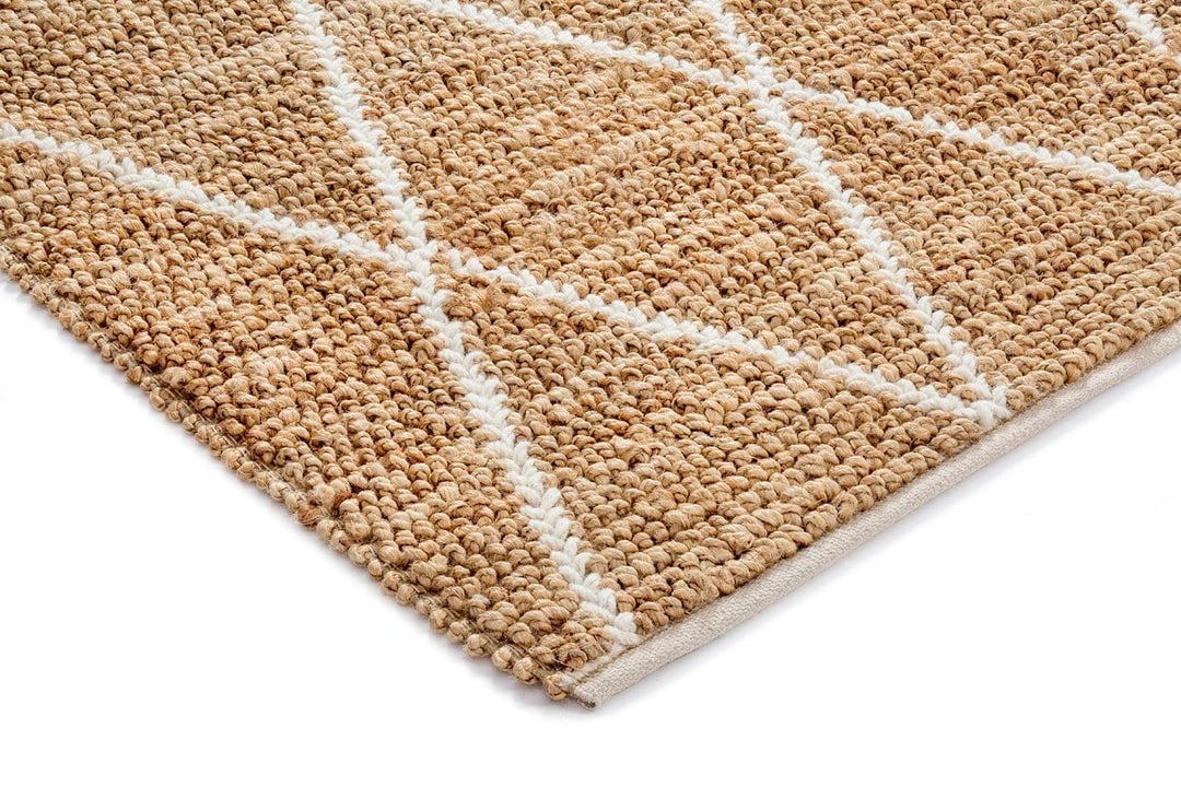 Part of the gorgeous Miss Amara Natural collection, Tove is a natural style hemp and wool blend rug with a simple diamond pattern in ivory. A great option for those looking to add an instant touch of nature to their space, Tove celebrates the natural variations of colour in the wool and hemp, and complements the tan hues with a simple, yet bold diamond pattern, woven into the design in crisp ivory.