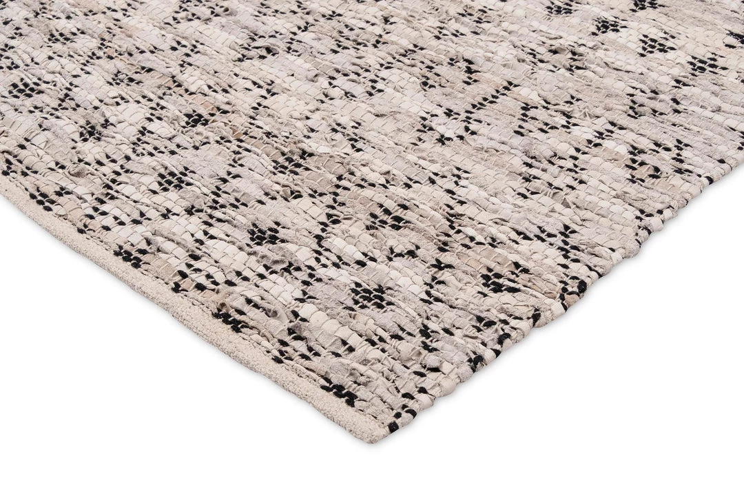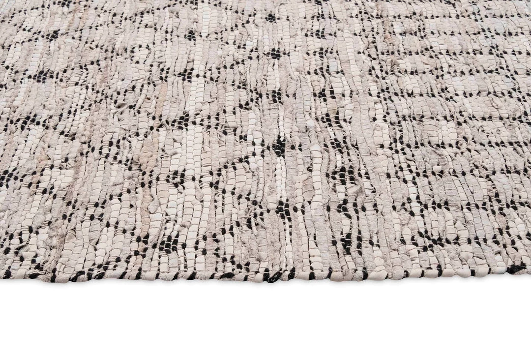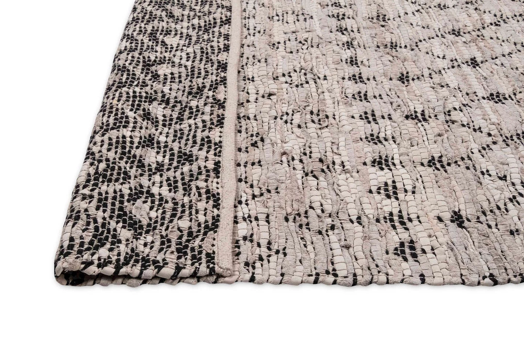 Hand-woven in India into a soft and dense flat weave made from 60% recycled leather and 40% cotton fibres.