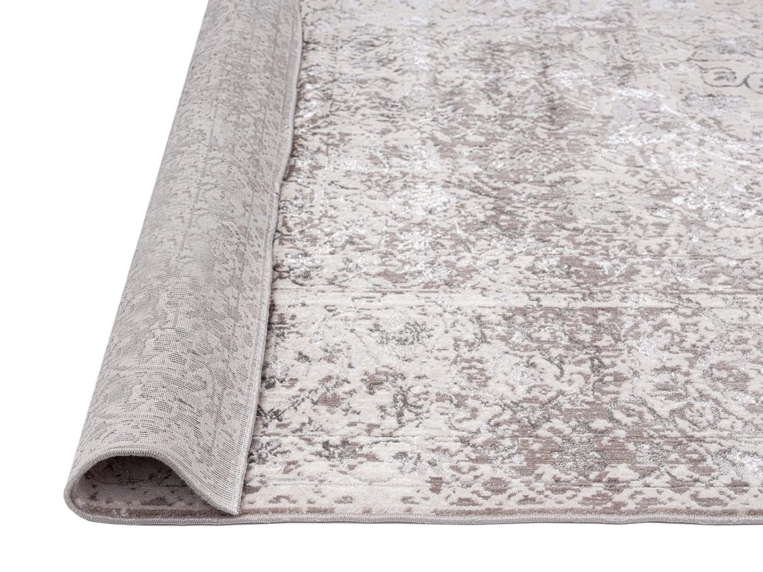 An exclusive design in the Miss Amara Collection, Winona is a vintage distressed style rug topped with elaborate floral motifs and patterns in multi-tones of brown and grey. Embellished with luxurious touches of silver for added sheen and dimension.