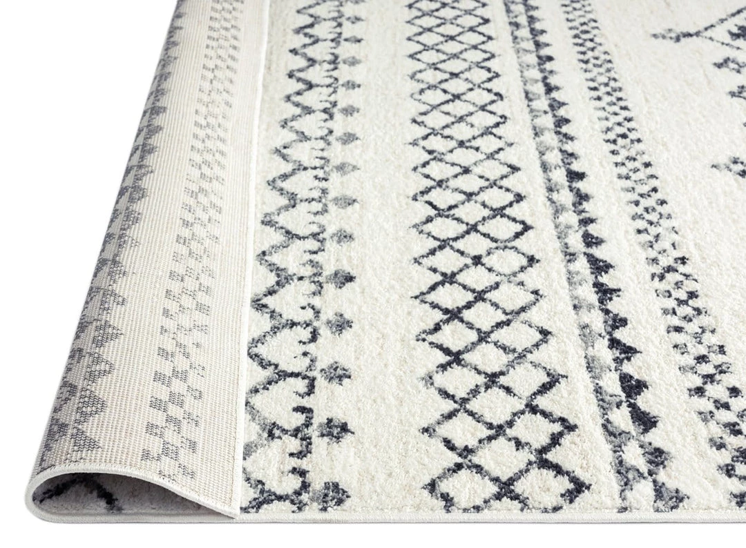 A unique diamond line print with transitional tones of dark grey and ivory. This high design piece would blend beautifully in a modern, boho, tribal, scandi or coastal-inspired interior.
